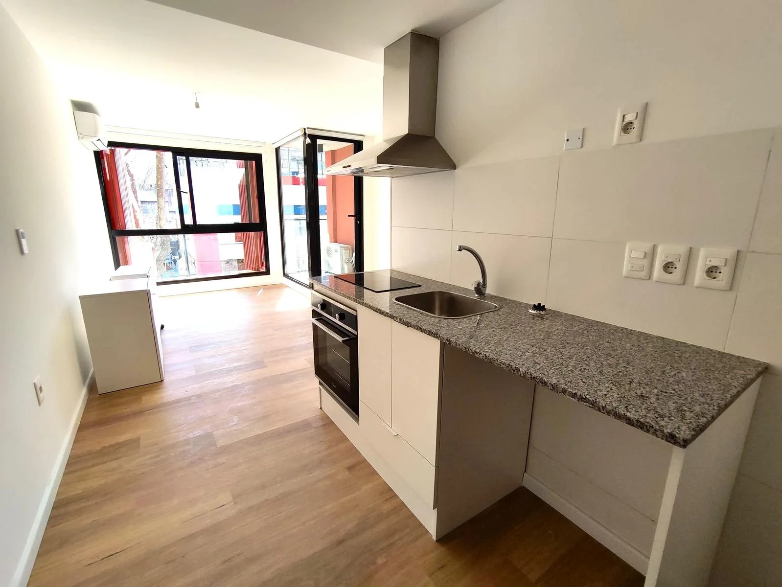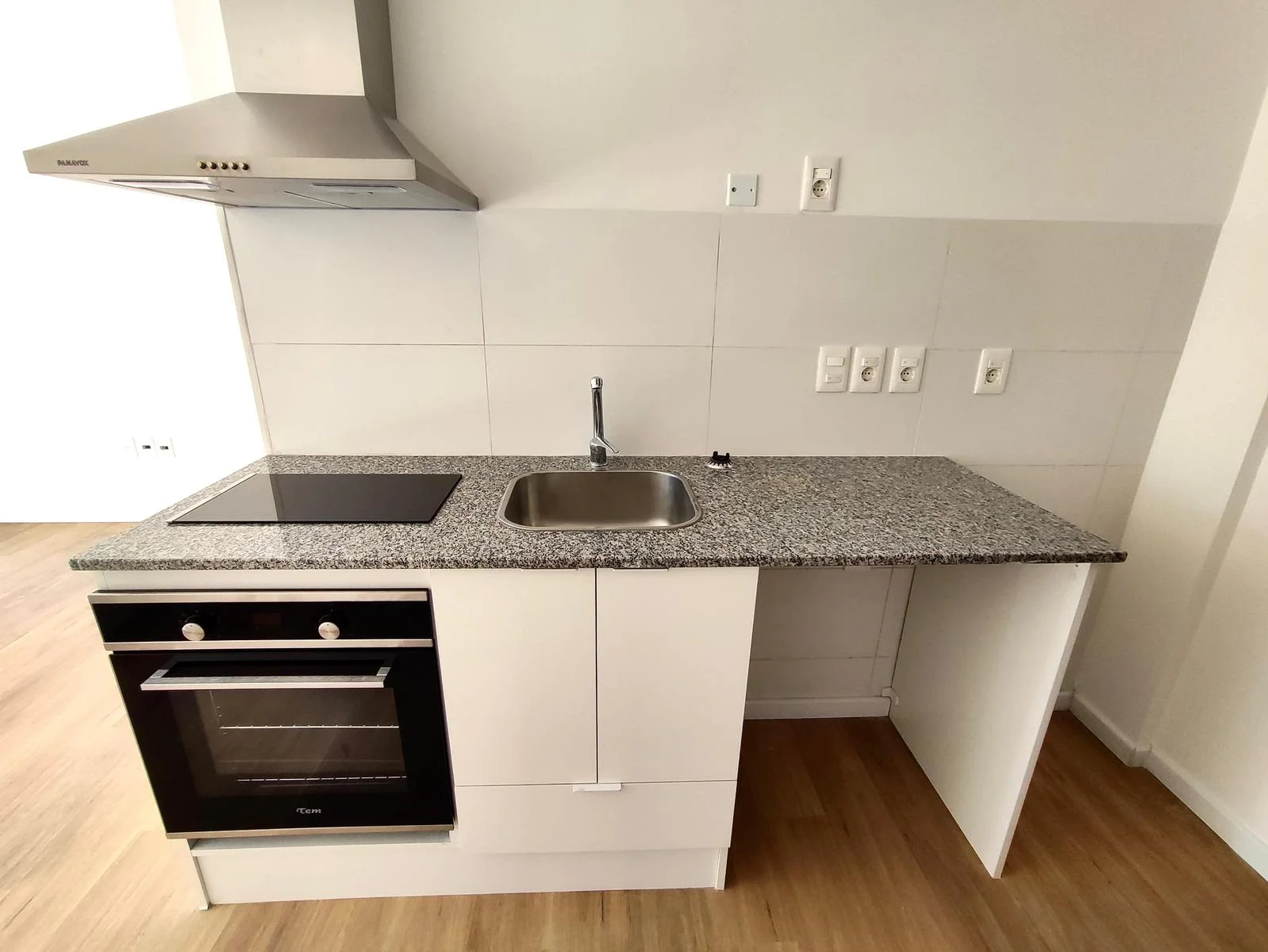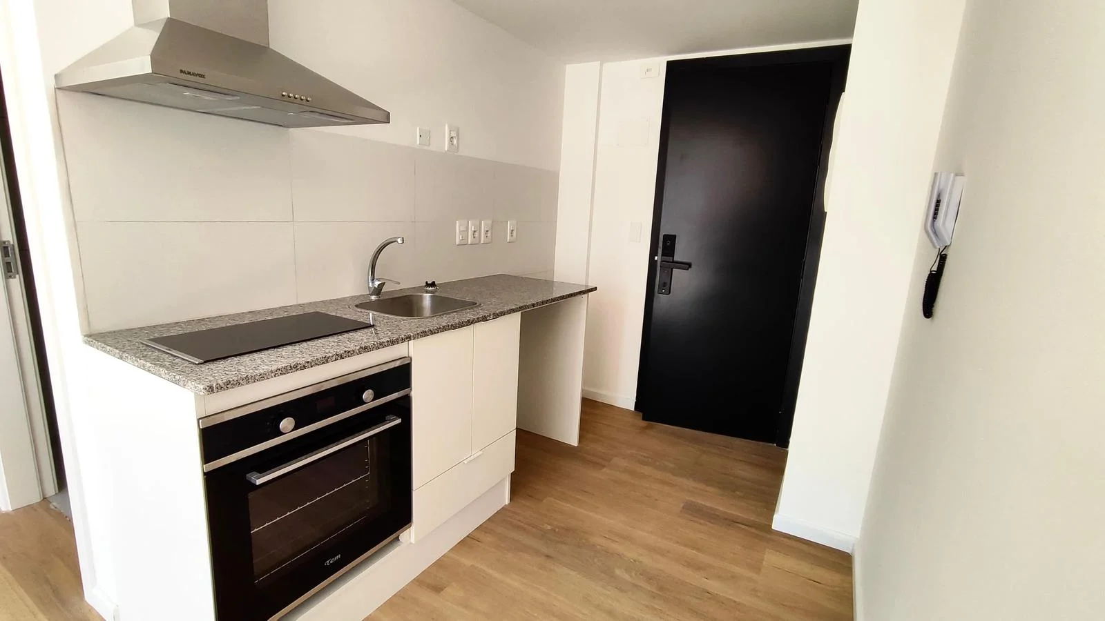 Cocina integrada con mesada y muebles bajo mesada. Pre instalación para lavarropas y calefón.