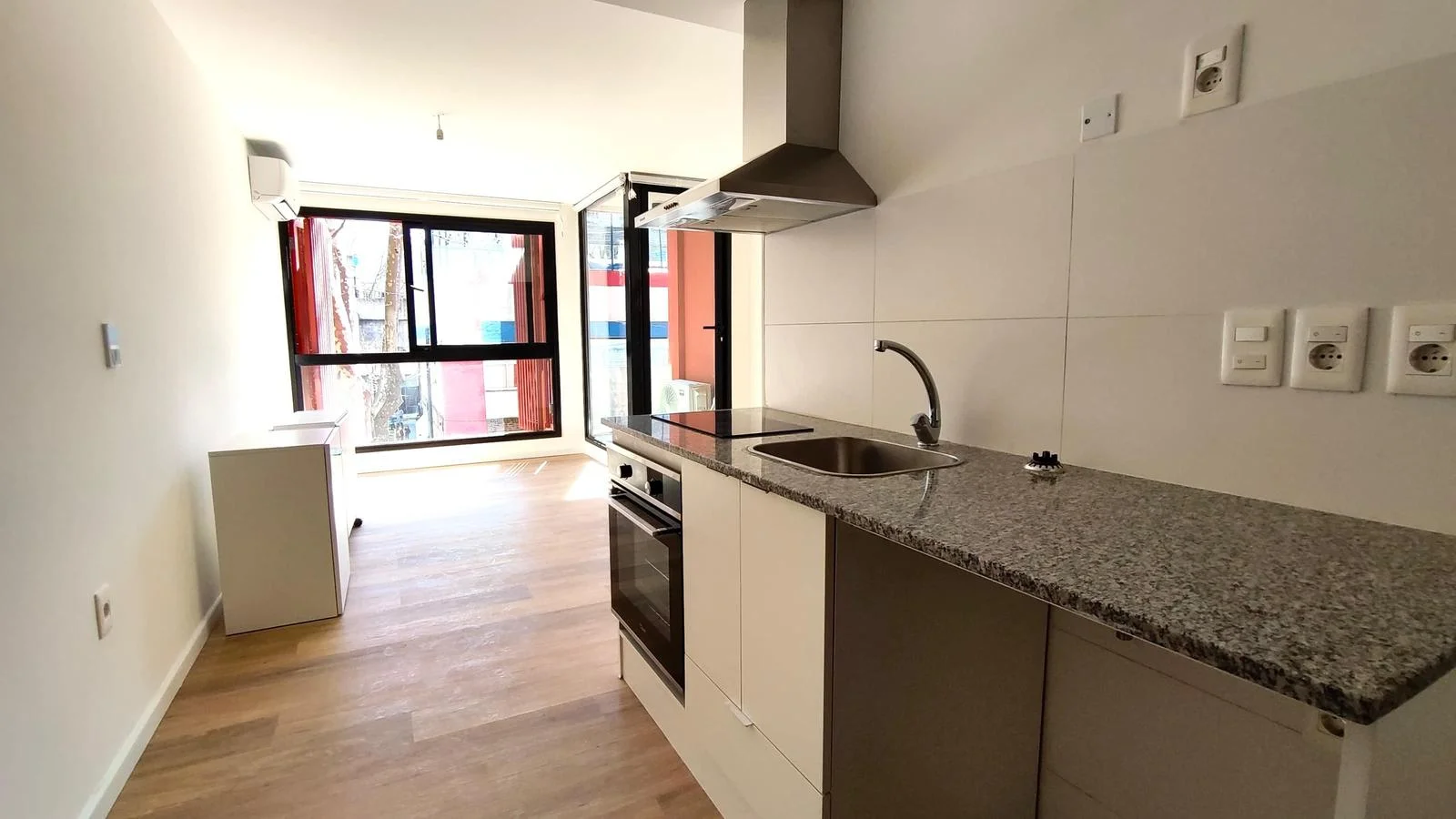 Cuenta con: mobiliario flex, escritorio y mesa, Horno empotrado, Anafe, campana y aire acondicionado, .-