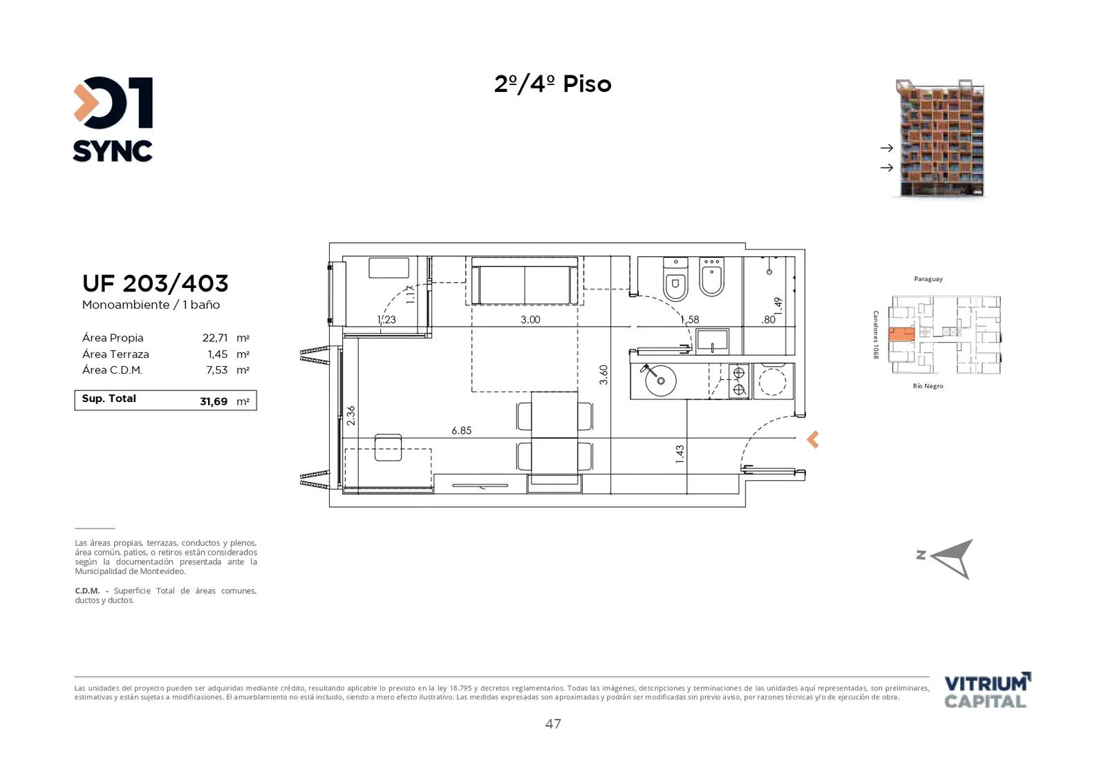 Edificio 01 SYNC, ubicado en Canelones y Zelmar Río Negro, a solo 3 cuadras al sur de Av. 18 de Julio y a 4 cuadras de la Rambla, en el límite entre Barrio Sur y el Centro de Montevideo.