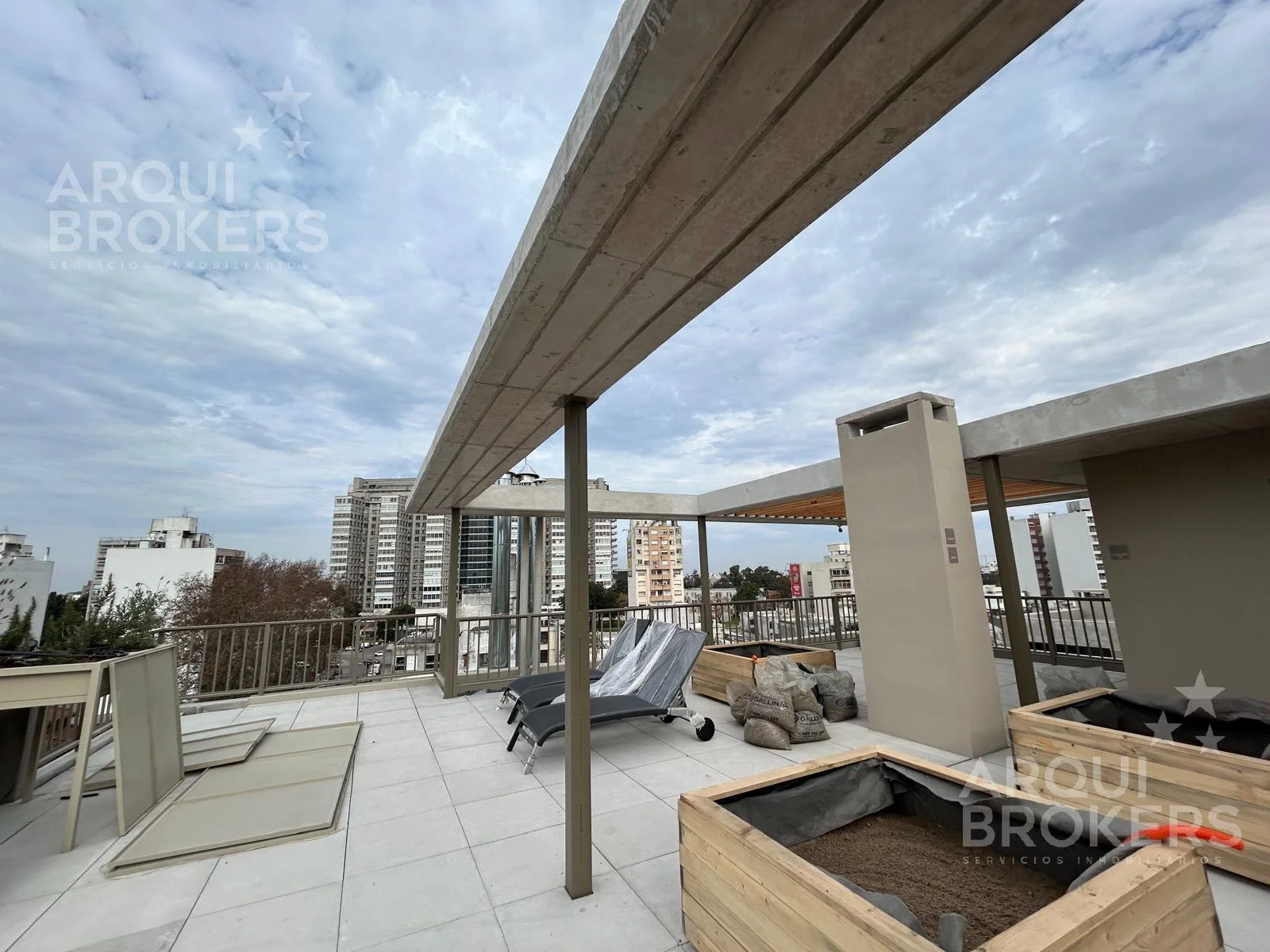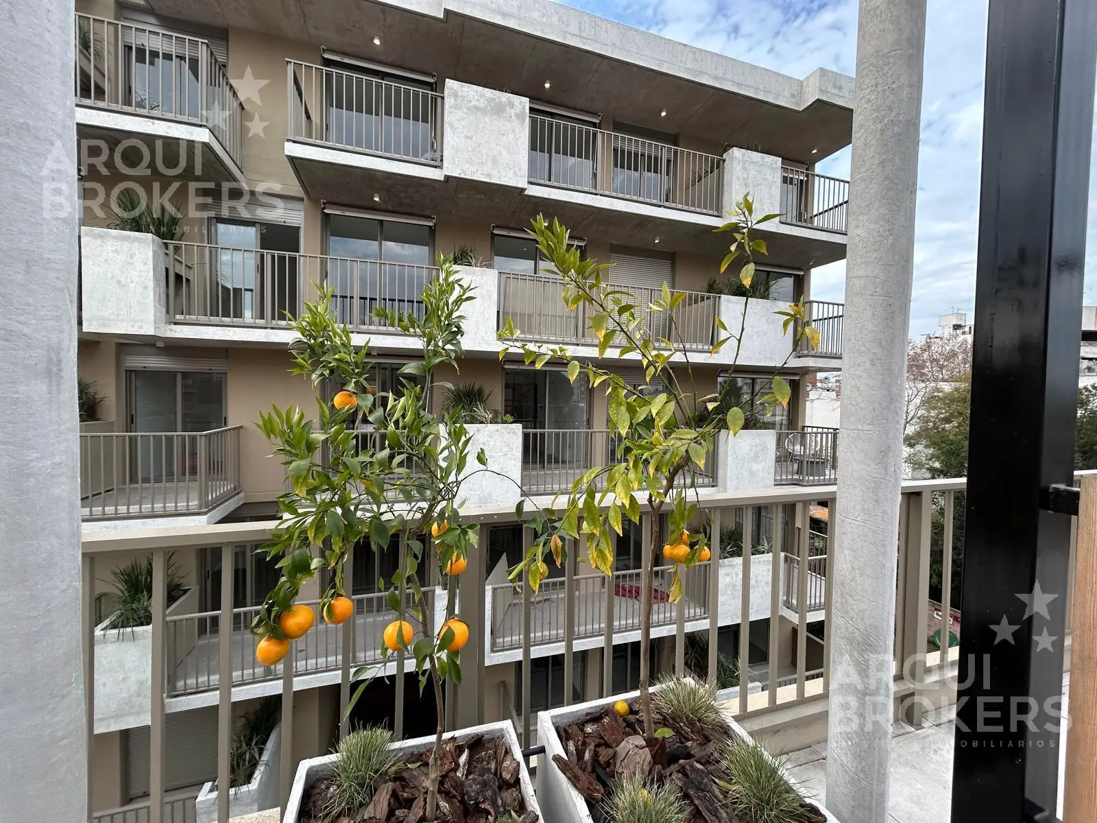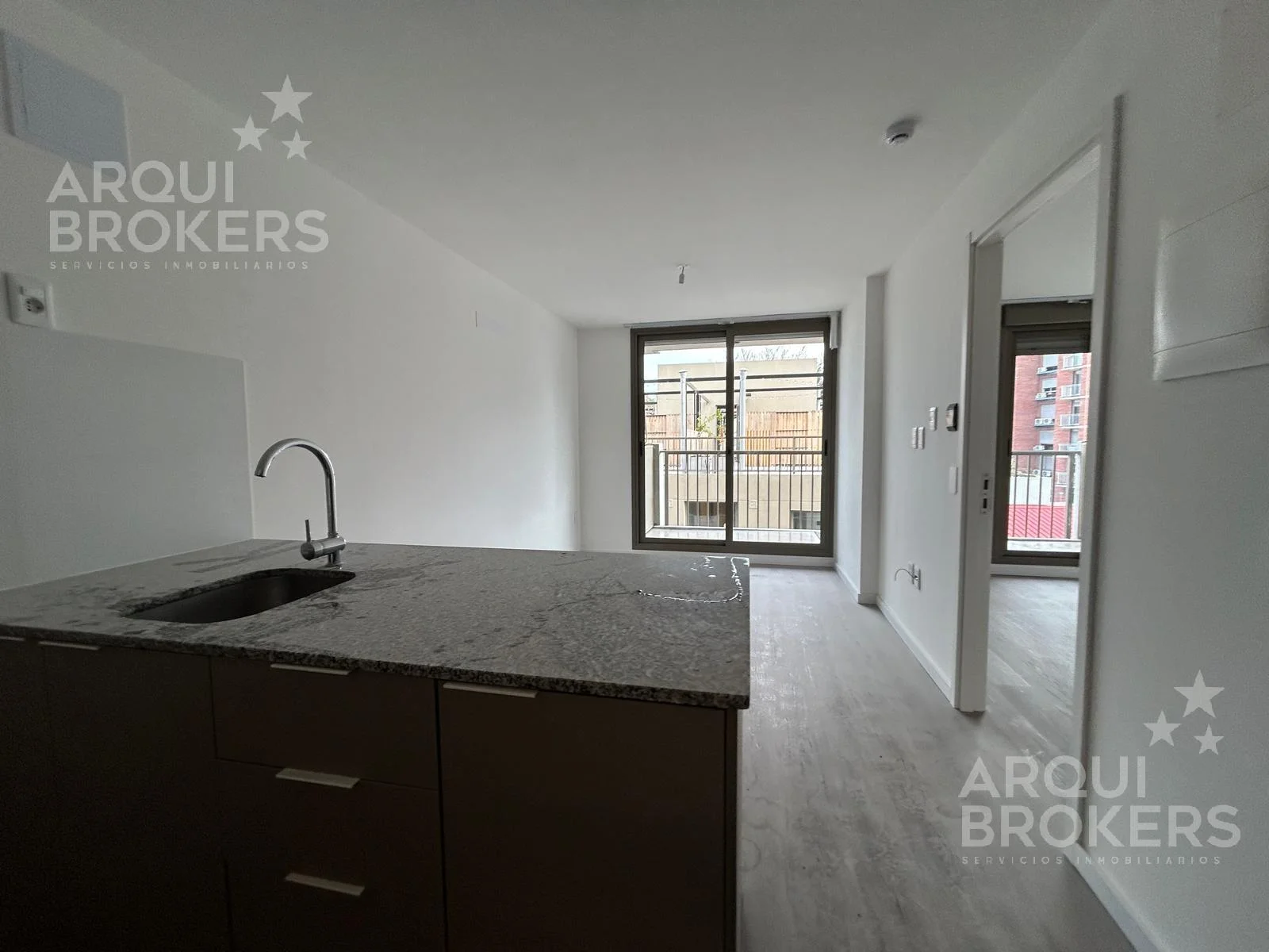 Monoambiente con terraza, cocina integrada y un baño completo.