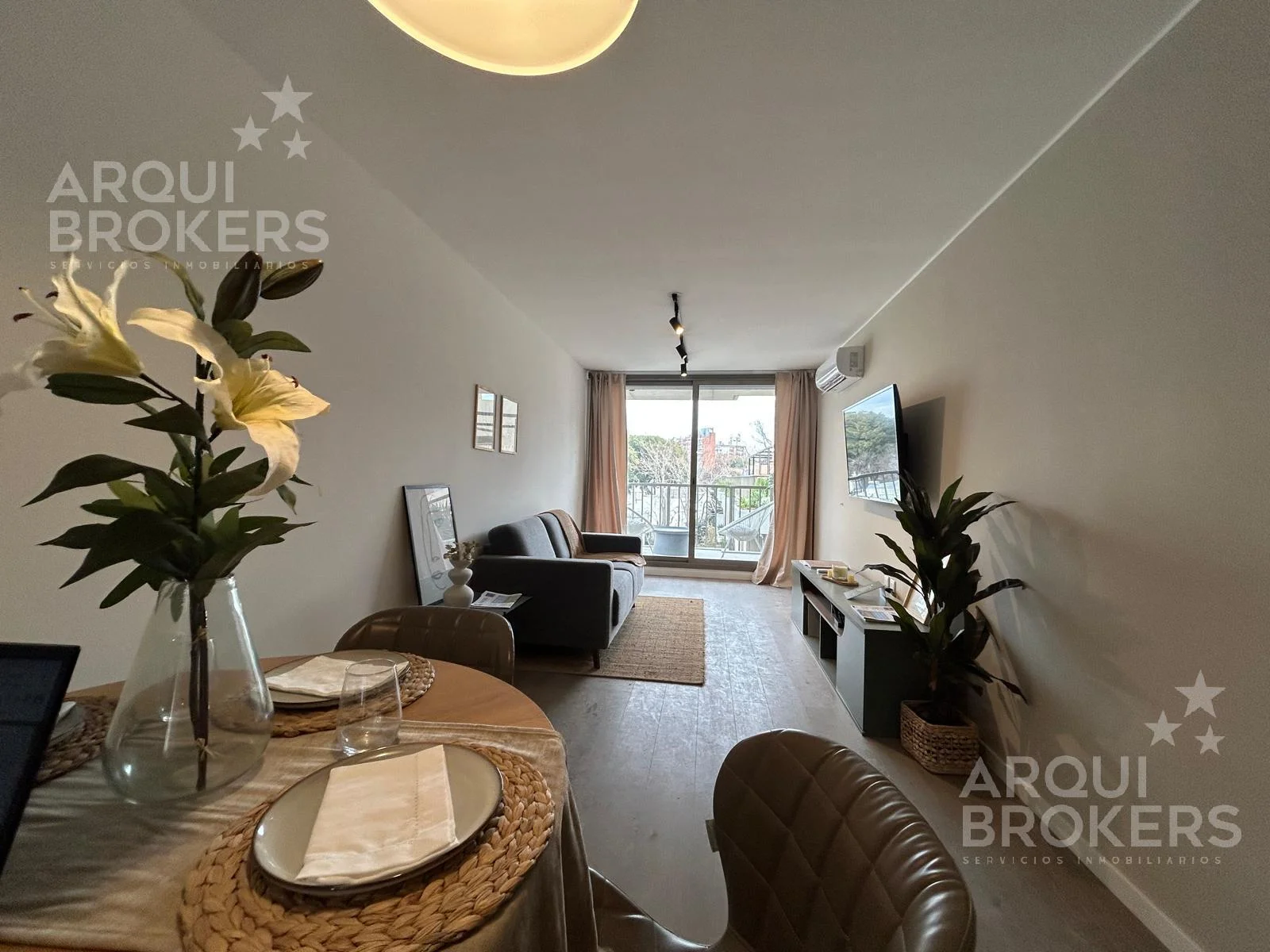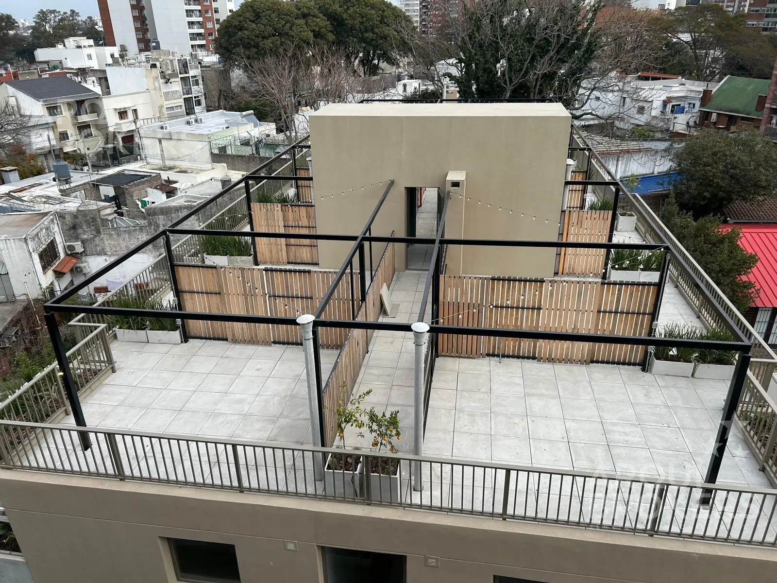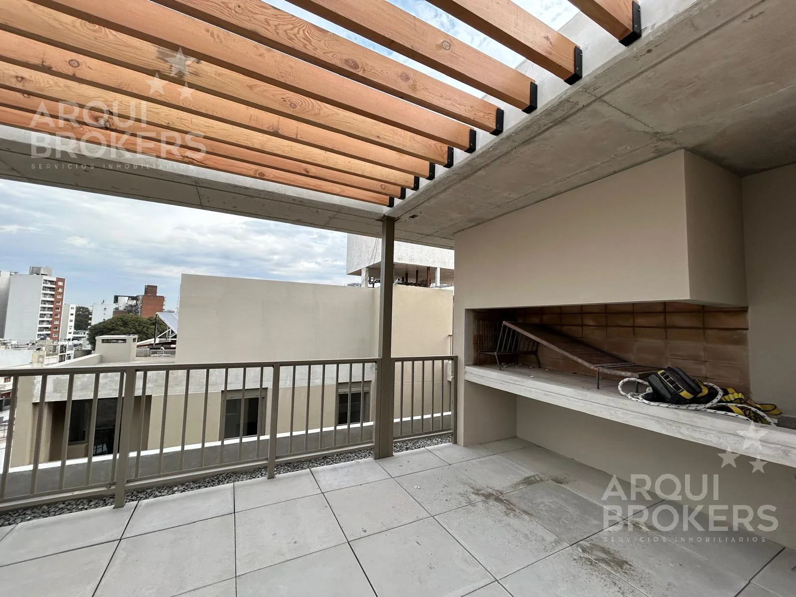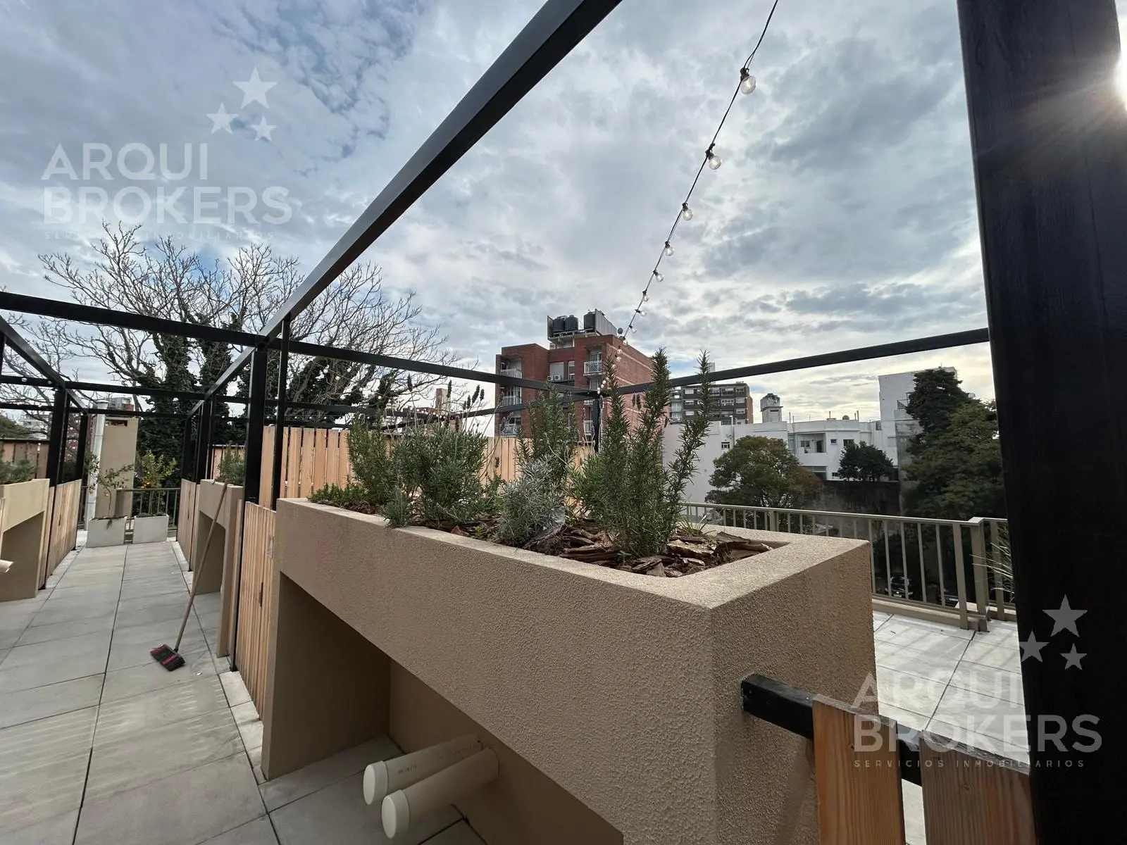 Monoambiente con terraza, cocina integrada y un baño completo.