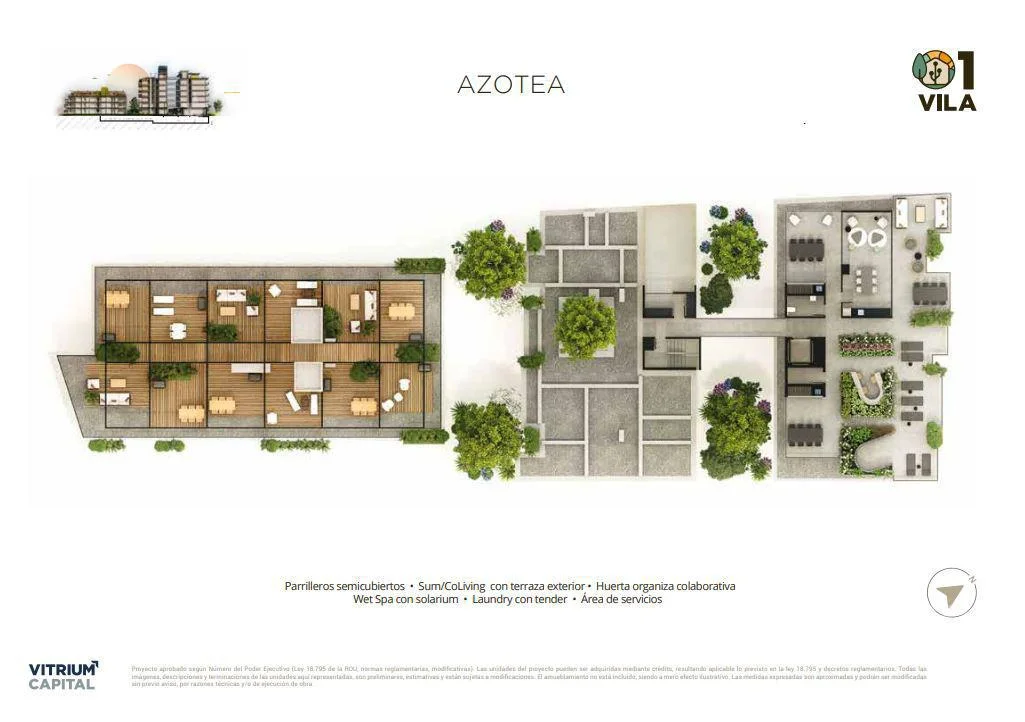 A su vez, en el último piso del bloque alto se encuentran las áreas comunes y de servicios para el uso y disfrute de todos los propietarios.