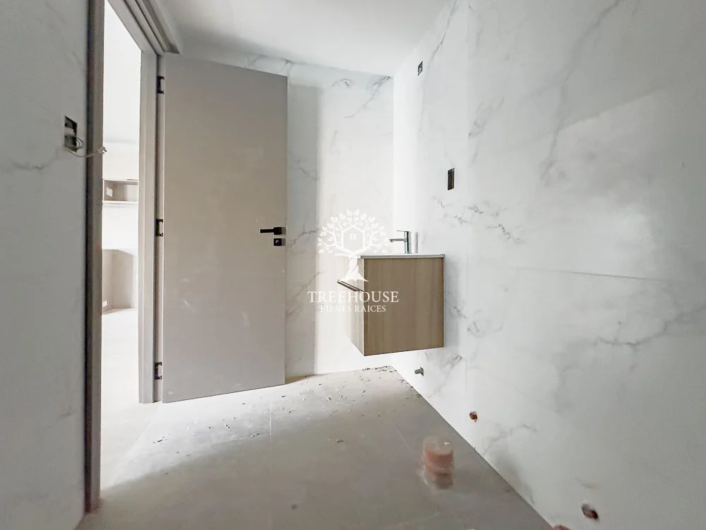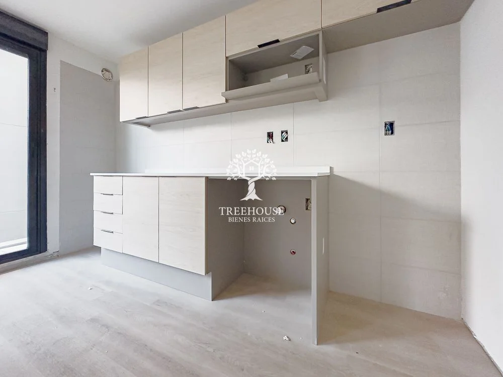 Ingreso hacia cocina integrada al living con salida a terraza y baño completo.