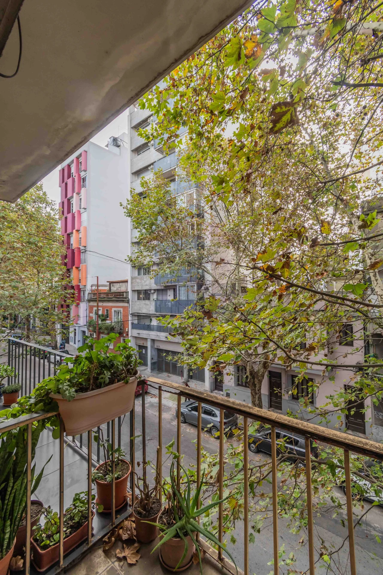 Living comedor esquinero con salida a gran balcón en forma de L de 10 m2.
