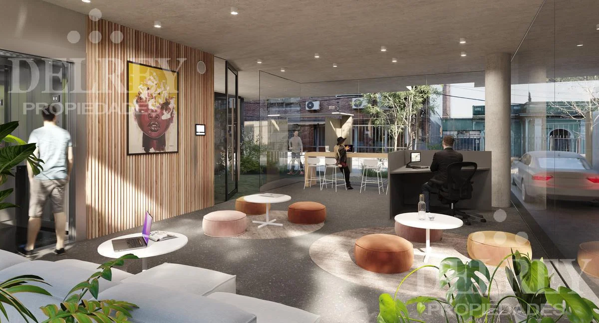 Dos parrilleros semicubiertos, área de coliving interior con terraza