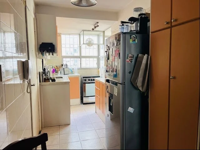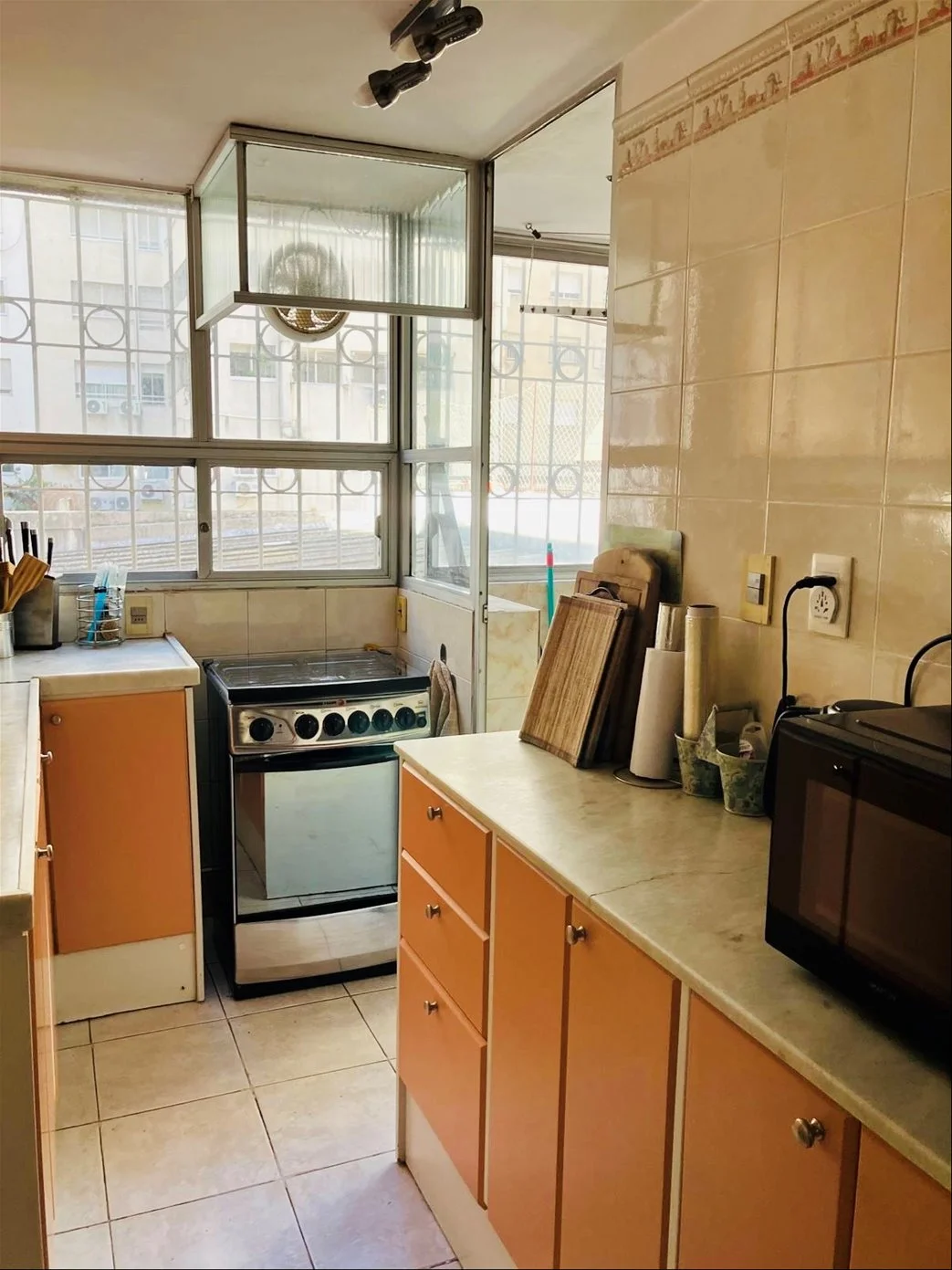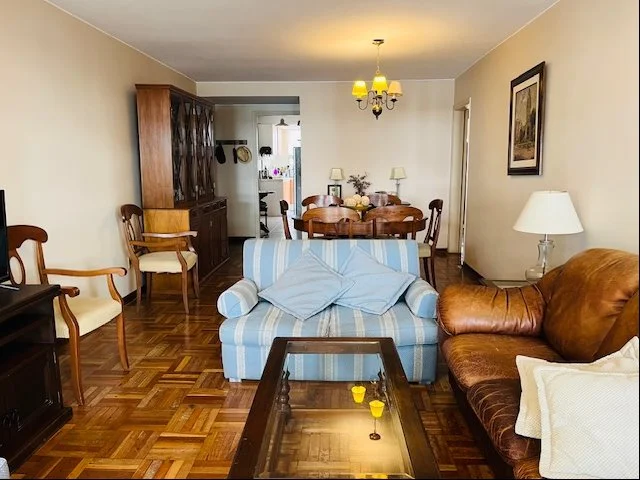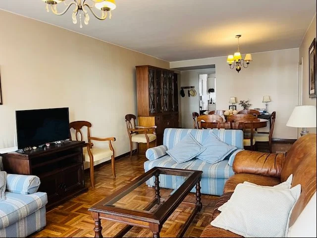 Amplio living comedor con pisos de parquette y salida a balcón al frente, cómoda cocina con buena terraza lavadero y acceso a servicio.