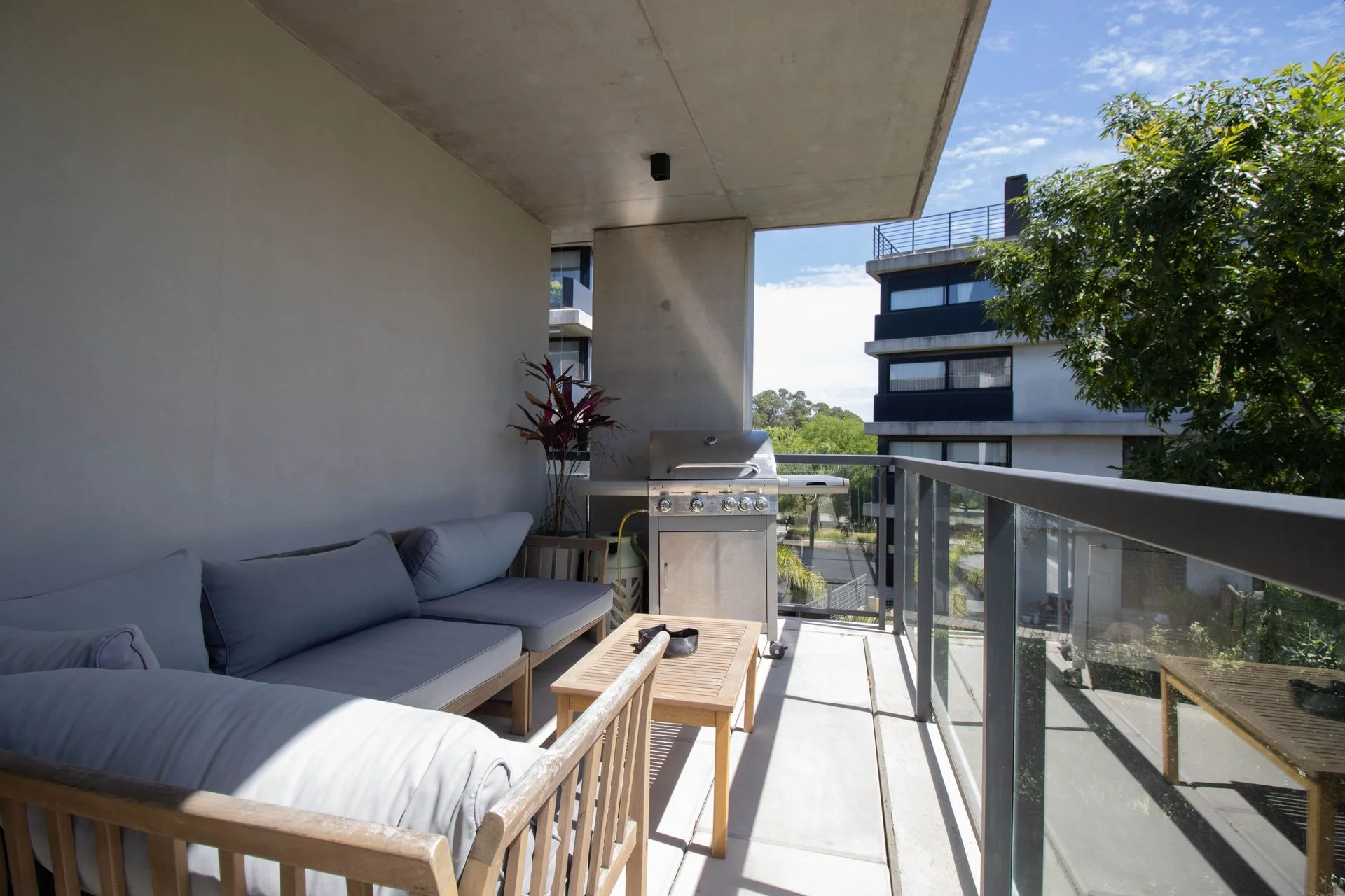 La terraza, de muy buen tamaño, incluye un parrillero a gas, ideal para disfrutar reuniones al aire libre.