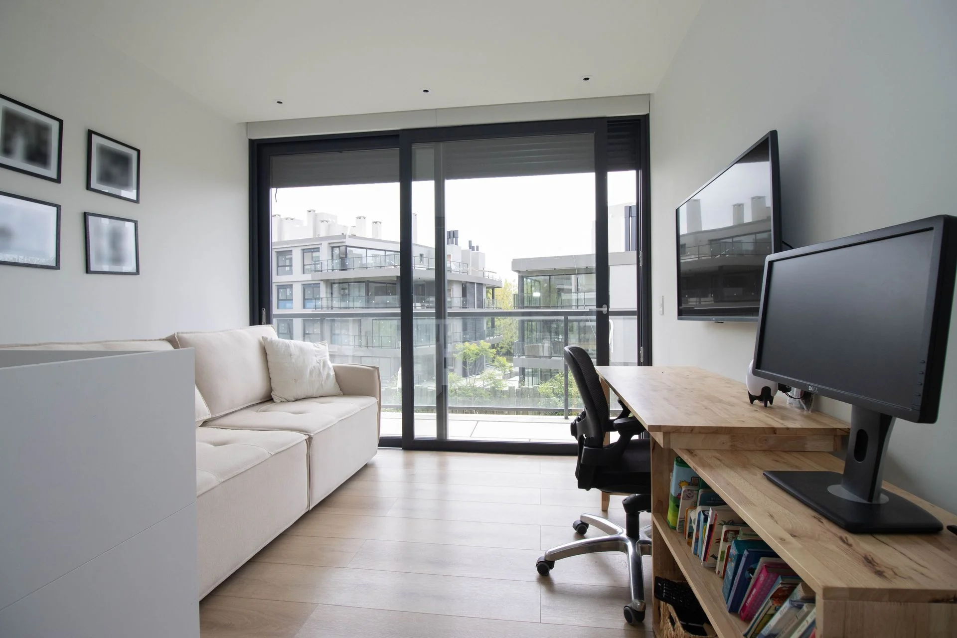Todas las aberturas están orientadas al norte, lo que garantiza luz natural durante todo el día. Además, cuentan con vidrios DVH y persianas eléctricas, asegurando eficiencia térmica, aislamiento y mayor confort.