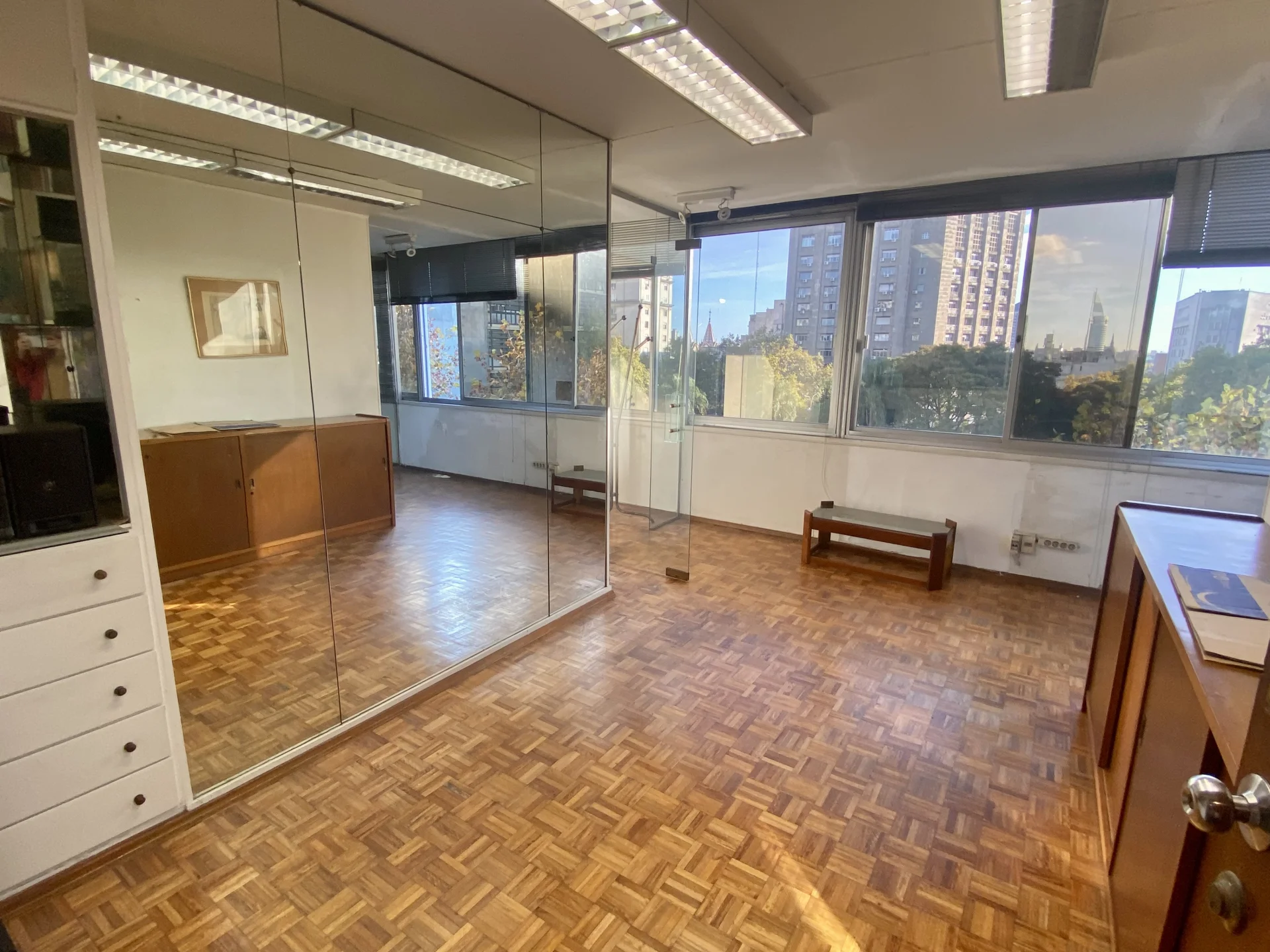 Oficina en alquiler ubicado en la zona de Plaza Entrevero, en el Centro, con acceso cercano a servicios y transportes. La unidad cuenta con tres ambientes bien ventilados e iluminados por amplios ventanales a lo largo de todos los esLa oficina ofrece pisos de parquet lustrado en todos los ambientes, y una kitchenette equipada con varios muebles de guardado. Dispone de un baño completo renovado recientemente, con terminaciones actuales.