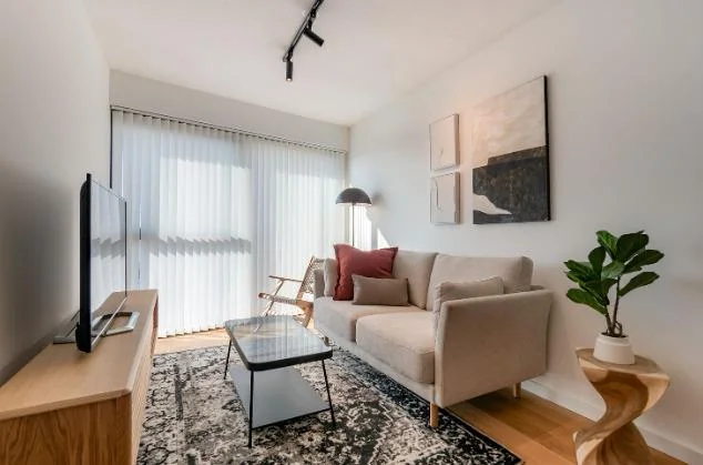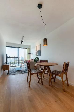 Al ingresar, la cocina se integra perfectamente a la sala de estar mediante una barra, creando un espacio fluido y conectado. Disfruta de la comodidad de un diseño que fomenta la interacción y la luminosidad.