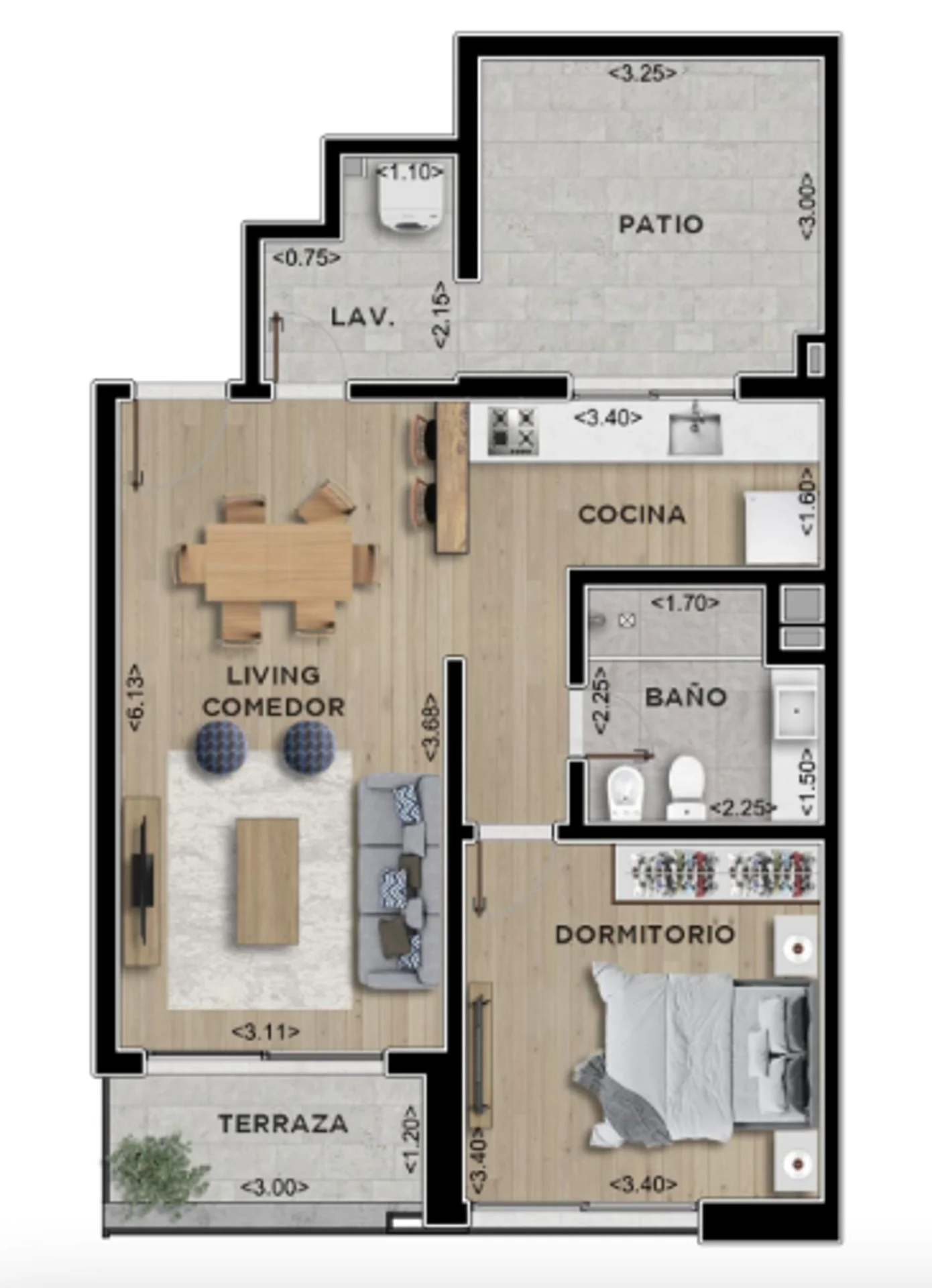 Esta diseñado para brindar un ambiente acogedor y moderno con una distribución inteligente del espacio que optimiza cada metro cuadrado.