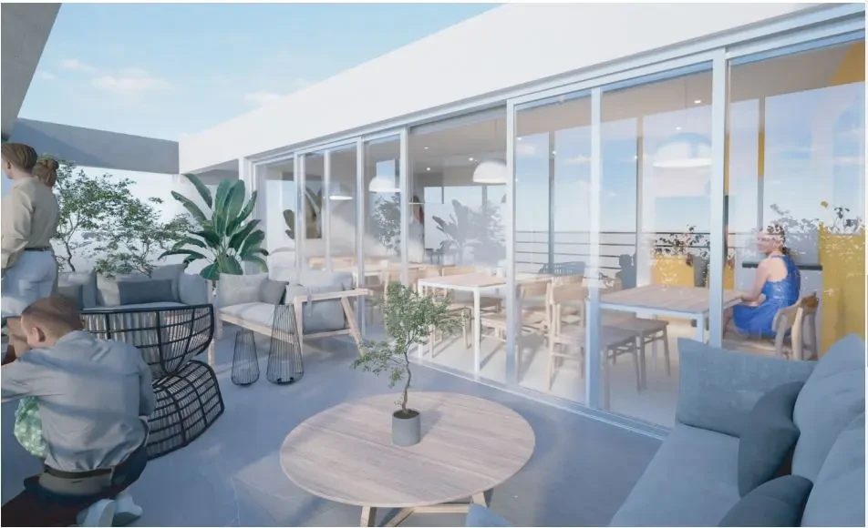 En planta baja y subsuelo se distribuirán 17 espacios de garaje opcionales, cowork en planta baja y en el último piso del edifico se ubicarán, espacio laundry para el lavado de ropa con lugar de tender para el secado de la misma.