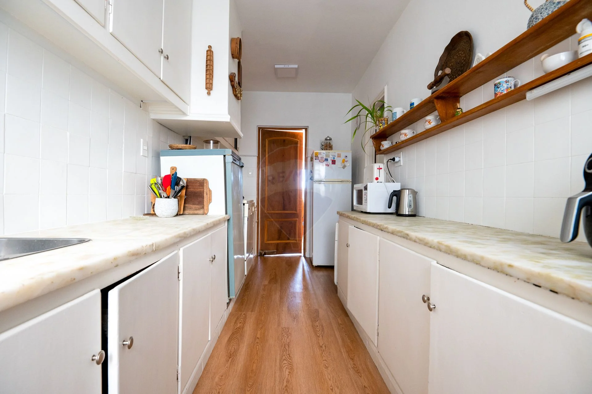 La cocina definida, cómoda y amplia, conecta con servicio independiente con baño y lavadero. Sus pisos fueron reciclados en 2018.