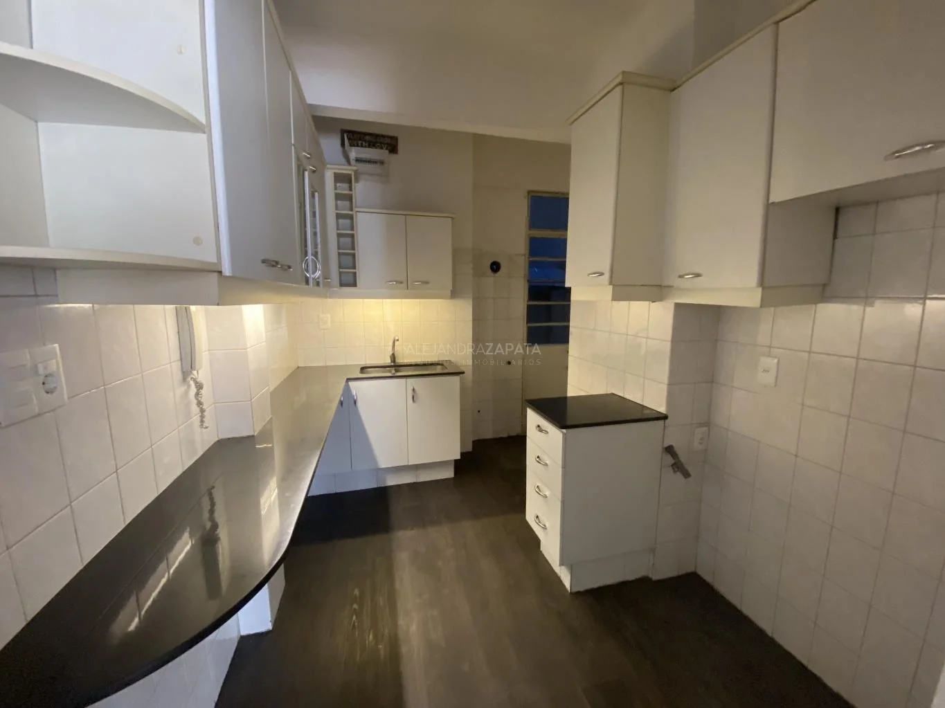 Cocina reciclada a nuevo con salida a un patio chico solo para tendido de ropa.