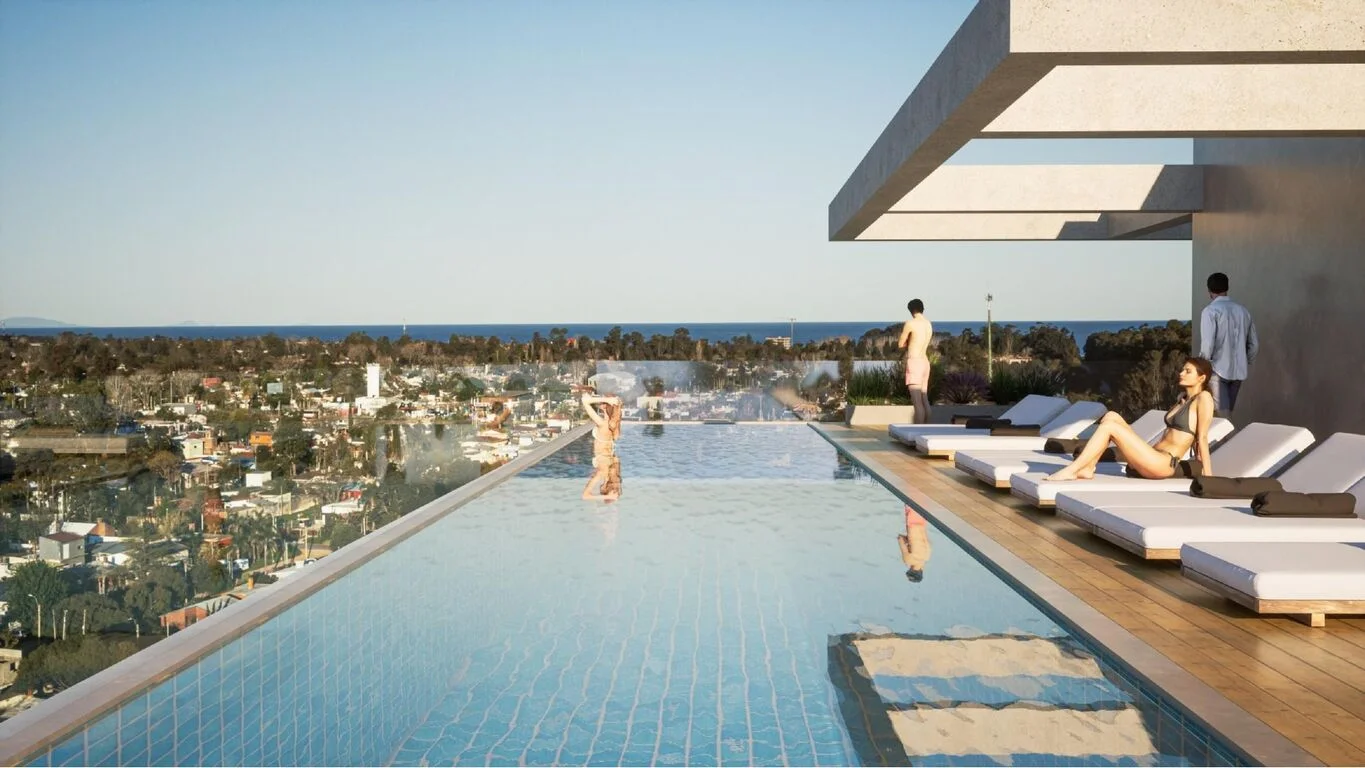 Último nivel con las mejores vistas 360º, una piscina de borde infinito con solárium, parrillero, livings de exterior .