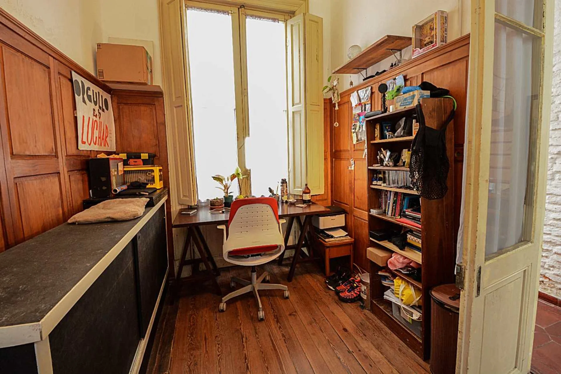 La unidad al frente, cuenta con 37m2 totales. Su planta versátil permite múltiples opciones: vivienda, consultorio o emprendimientos que requieran área administrativa con vivienda anexa. La propiedad mantiene características arquitectónicas originales, con actualización en el año 1996