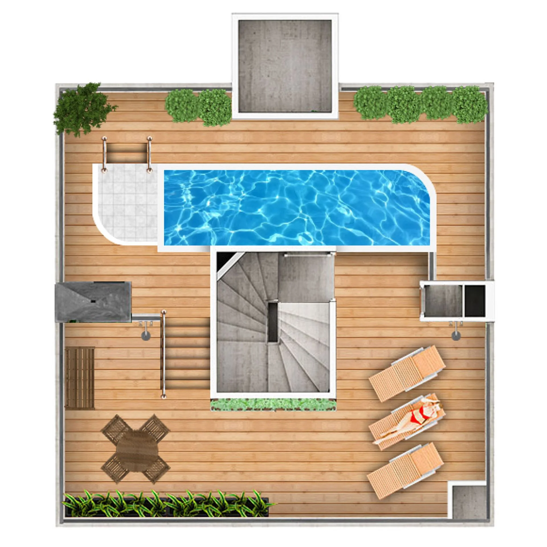Área propia: 36.87 mts2 (con ductos y muros), terraza: 1.74 mts2.