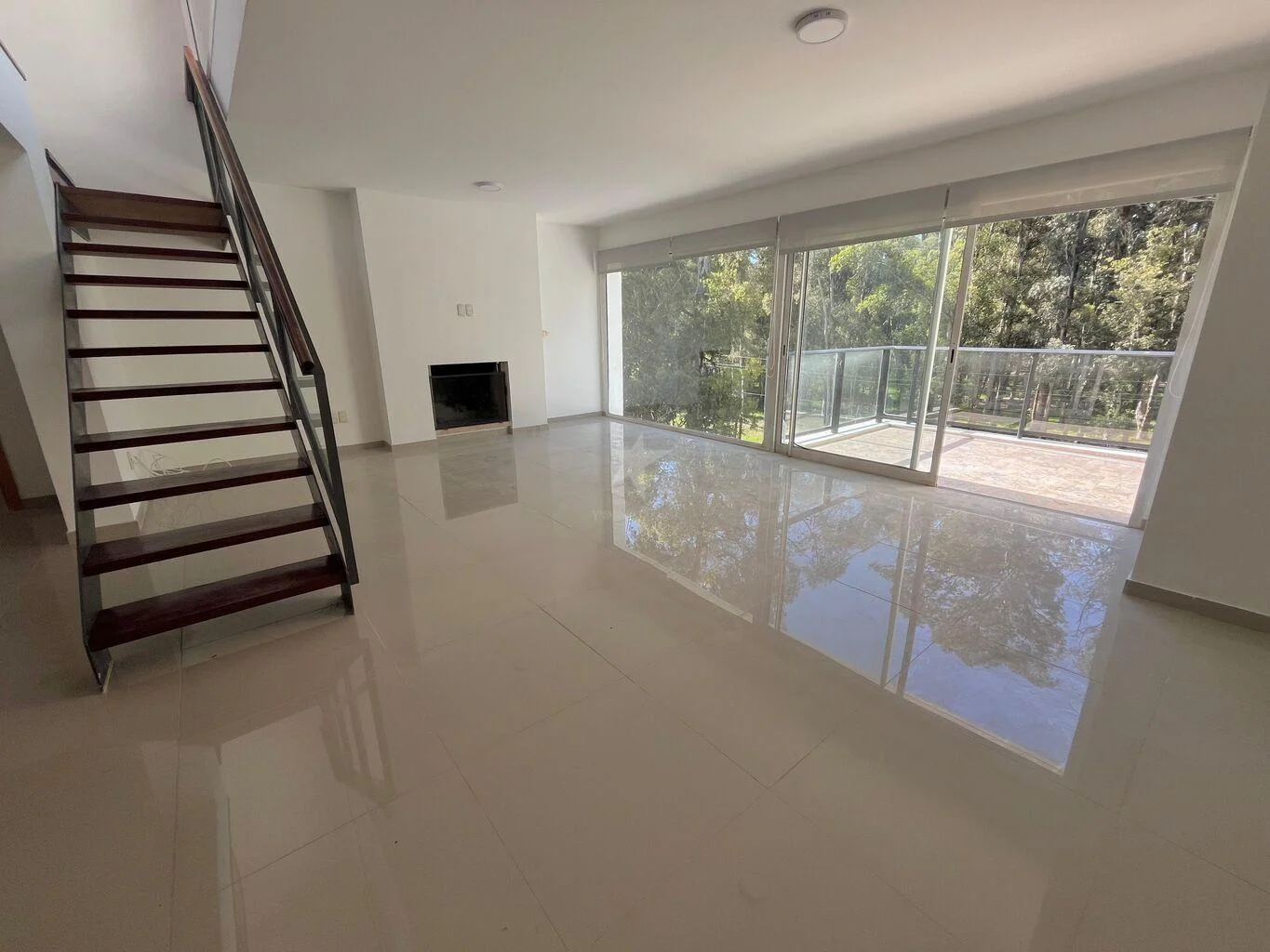 Planta alta gran estar con aire acondicionado y salida a gran terraza con parrillero y vista al lago.