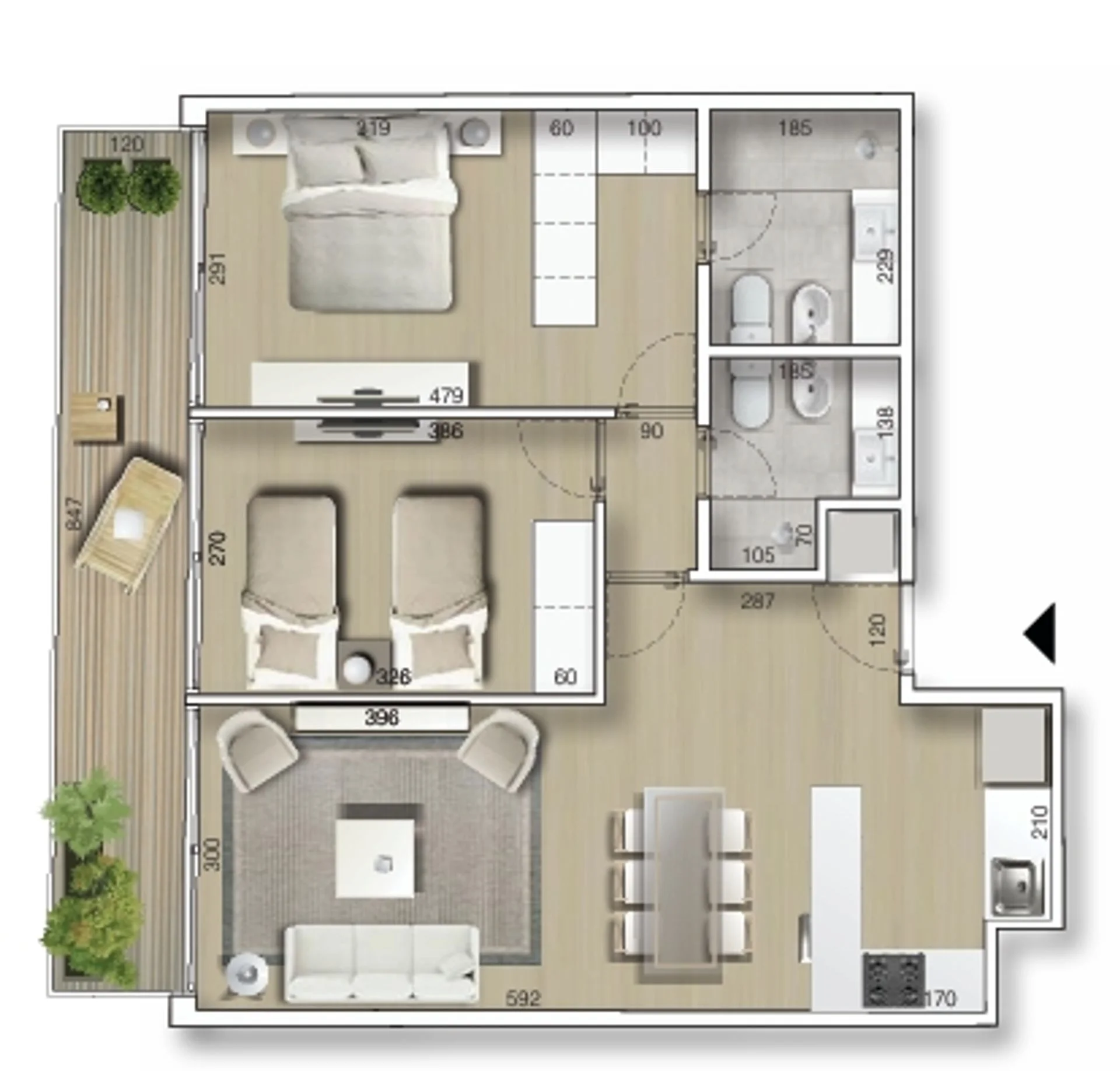 Unidad de dos dormitorios y un baño desde USD. 198.000.-