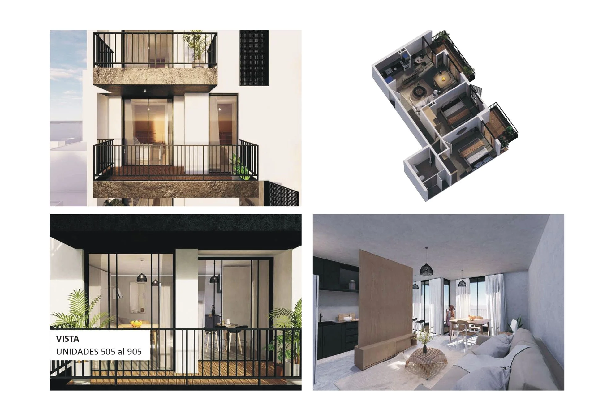 Todas las unidades poseen terrazas, previsión para la conexión de aires acondicionados, muebles aéreos y debajo mesada en cocinas, conexión para lavadora.