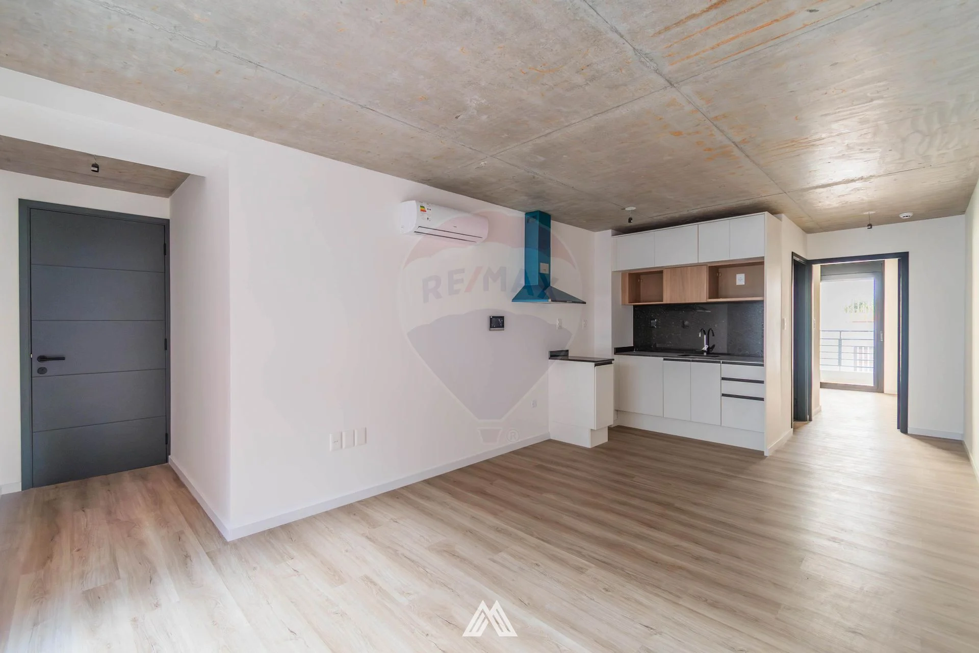 Es un apartamento en el tercer piso con orientacion norte-sur. Se distribuye de la siguiente forma, al acceder nos recibe un hall el que se conecta al living. comedor con cocina integrada y un gran ventanal con persianas. El baño es completo con muy lindas terminaciones, y el dormitorios, con balcón.