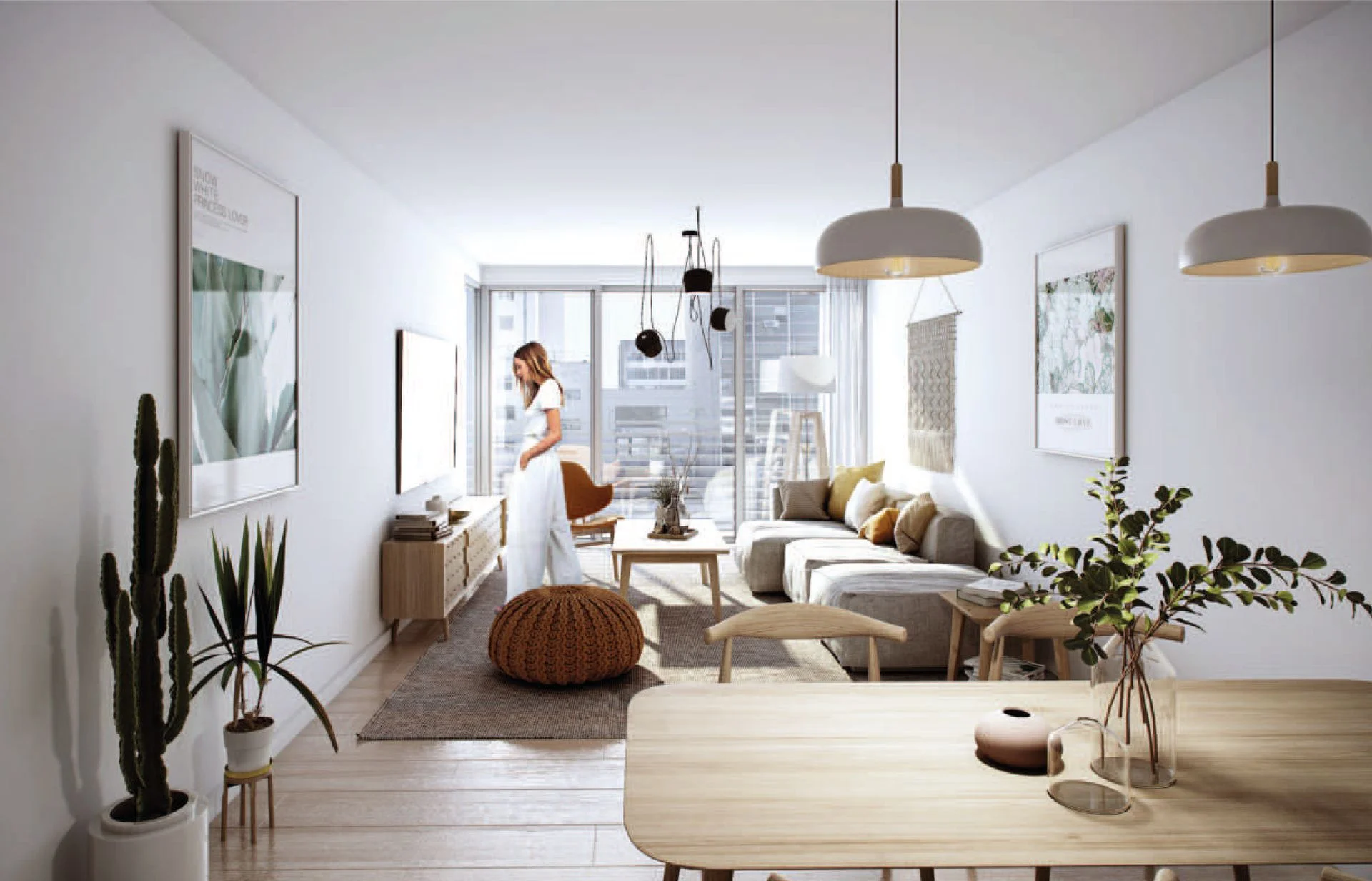 - Apartamento de 1 dormitorio con mayor metraje que la media del segmento: 58 m² (51m² interiores + 7m² de balcones).