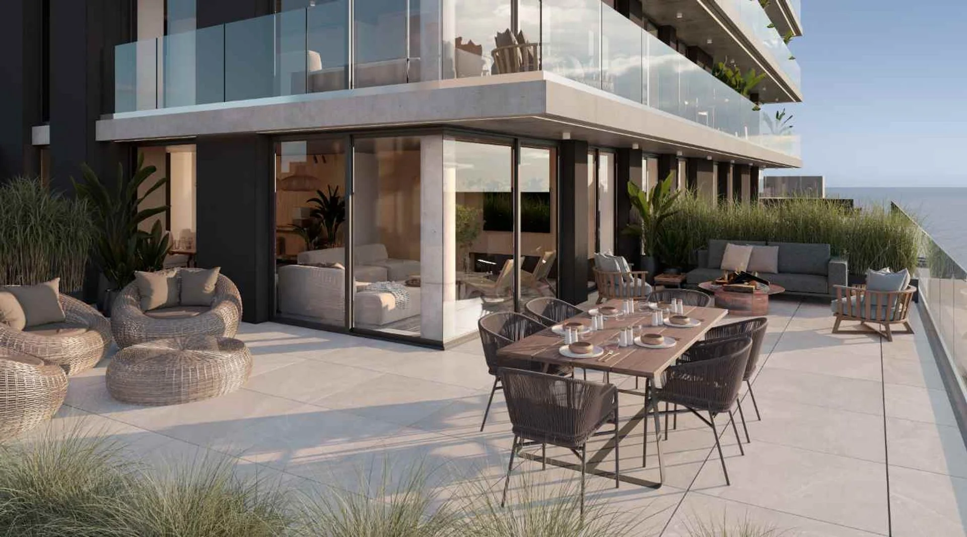 La unidad 601 se desarrolla en esquina, con doble orientación Oeste - Norte, y gran terraza de 100 m2 que la rodea e incluye parrillero propio.