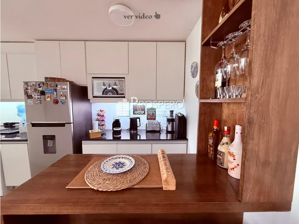 Living-comedor con aire acondicionado y gran ventanal con buena luz natural, cocina semi definida equipada con; muebles aéreos y bajo mesada, barra desayunadora y campana extractora, ademas cuenta con salida a terraza lavadero.