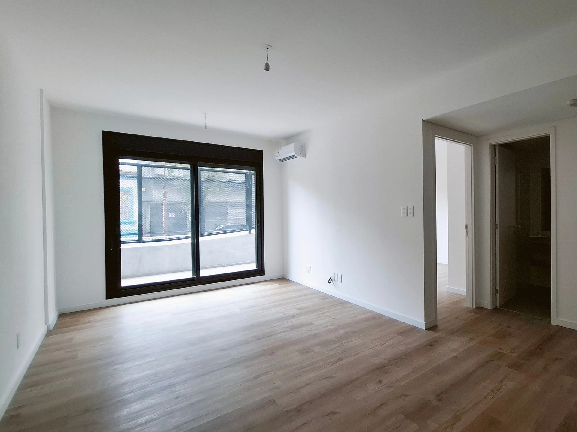 Unidad 109, al frente. Living comedor con salida a terraza. Cocina integrada con muebles áereos y bajo mesada. Dormitorio con placard. Baño completo con mueble, espejo, columna de ducha y placard para instalación de calefón y lavarropas. Aire acondicionado en living y previsión en dormitorio. Aberturas de aluminio con cortina de enrollar. Pavimento vinílico de alto tránsito símil madera. Se destaca el metraje del apartamento y su excelente luminosidad.