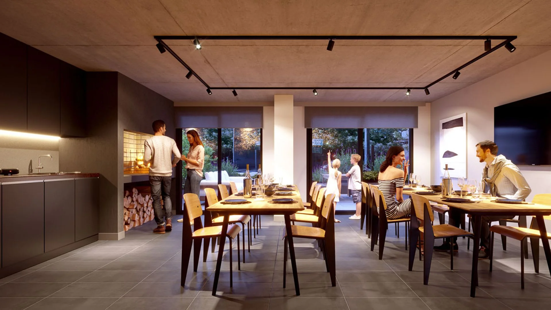 El edificio contará con barbacoa con cocina integrada y parrillero que se extiende al exterior con amplia terraza y livings exteriores. Smart Lockers. Espacio de Cowork. GYM. Zona fitness exterior. Study Room. Game Room. Laundry.