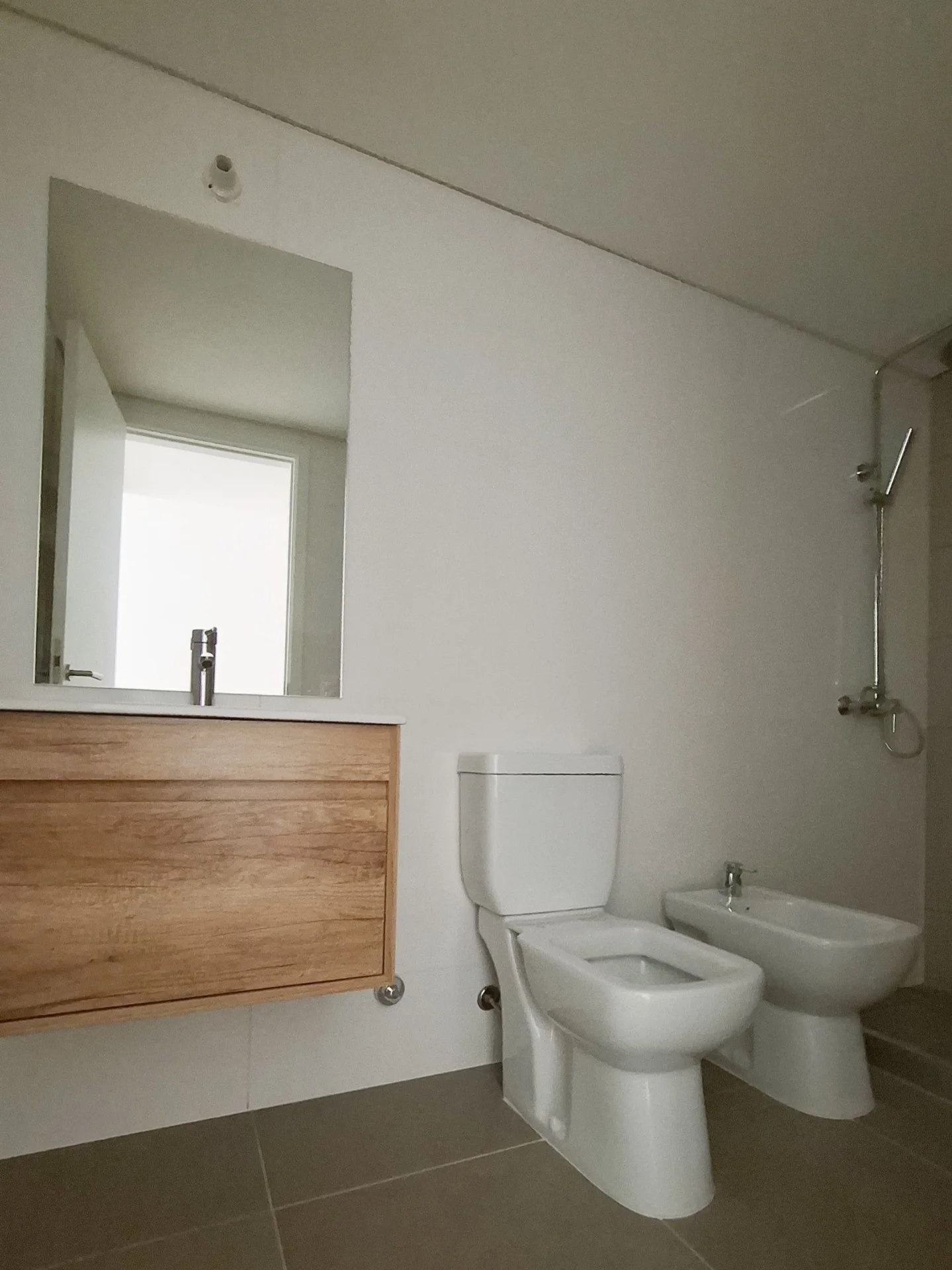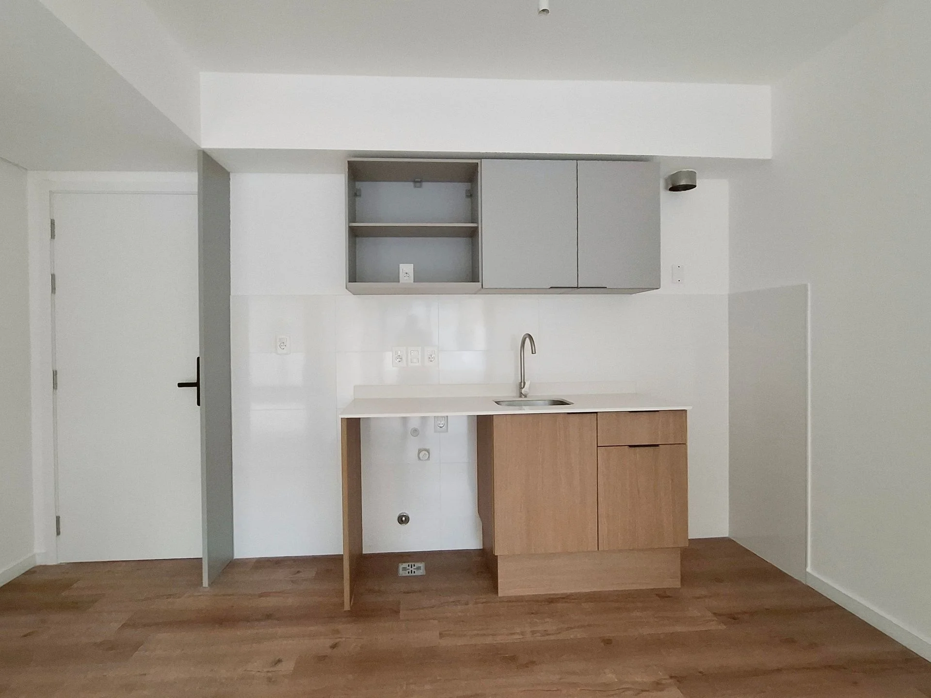 Unidad 109, al frente. Living comedor con salida a terraza. Cocina integrada con muebles áereos y bajo mesada. Dormitorio con placard. Baño completo con mueble, espejo, columna de ducha y placard para instalación de calefón y lavarropas. Aire acondicionado en living y previsión en dormitorio. Aberturas de aluminio con cortina de enrollar. Pavimento vinílico de alto tránsito símil madera. Se destaca el metraje del apartamento y su excelente luminosidad.