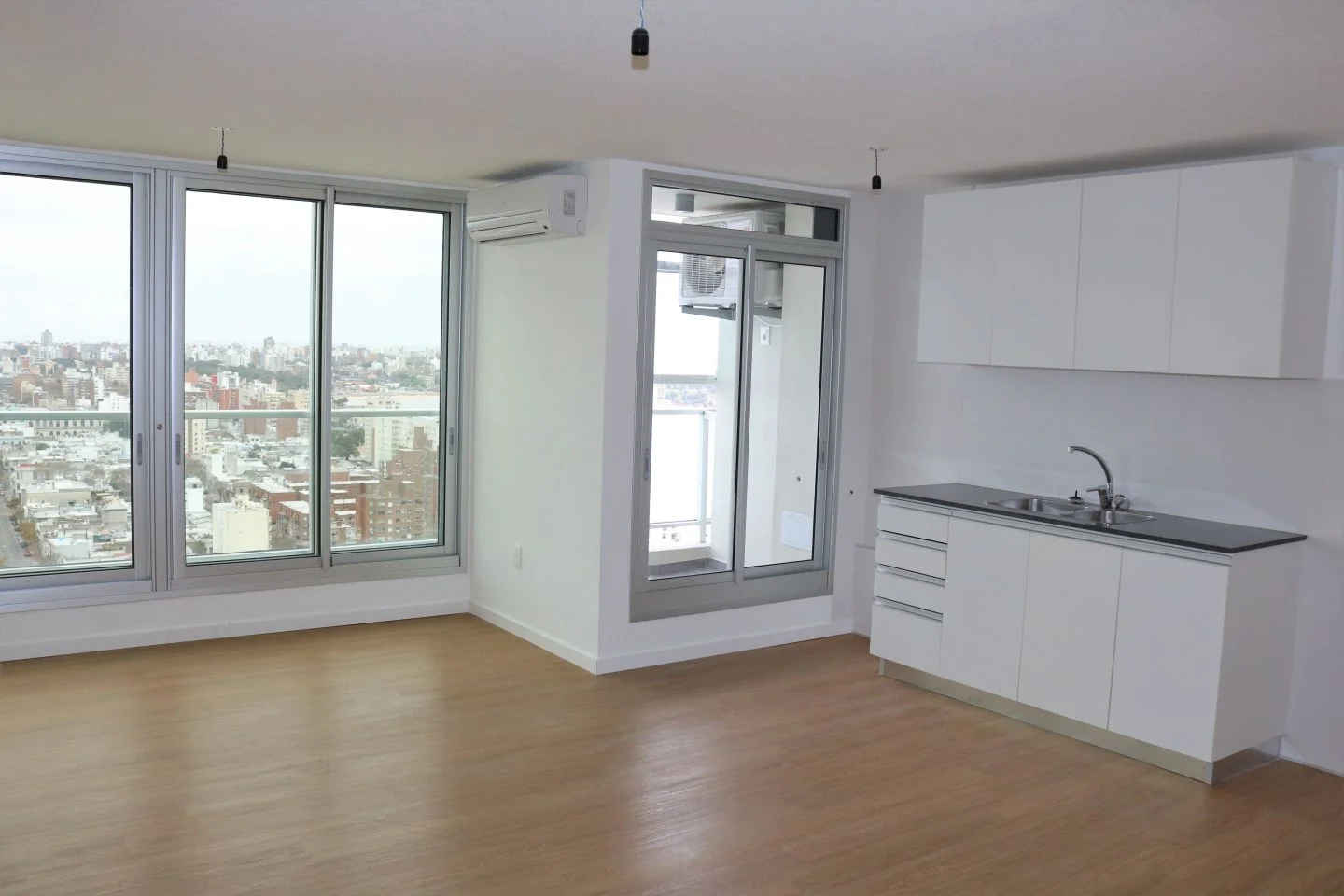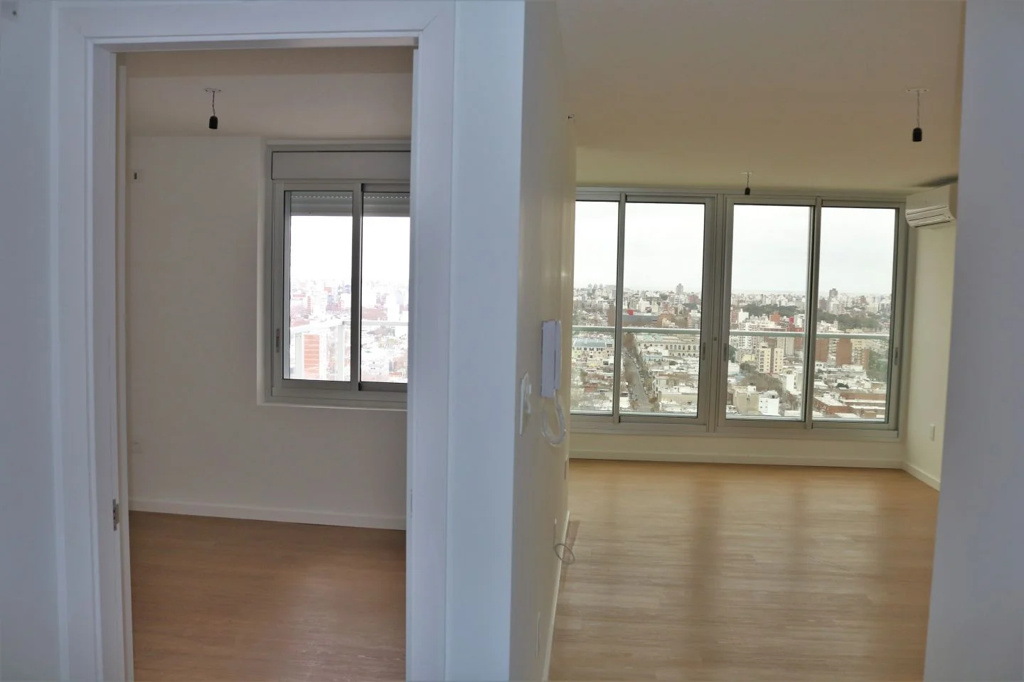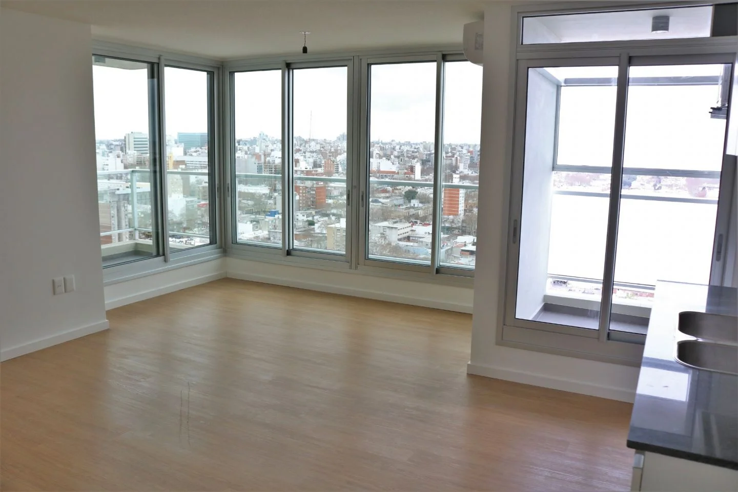 - Living con aire acondicionado y amplios ventanales.