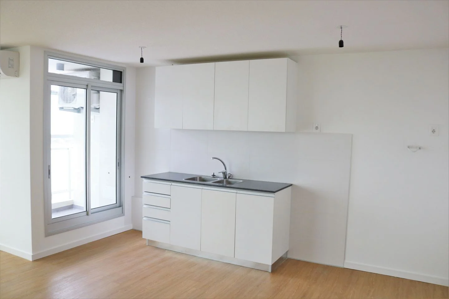 - Cocina integrada con muebles sobre y bajo mesada.