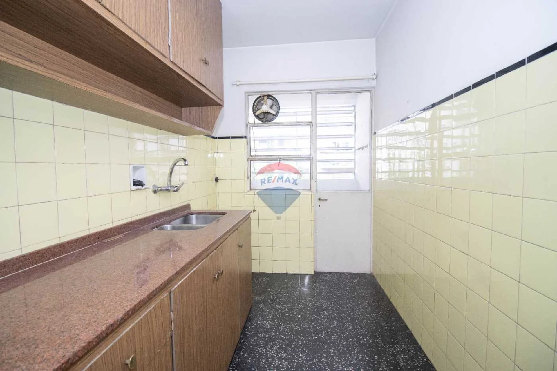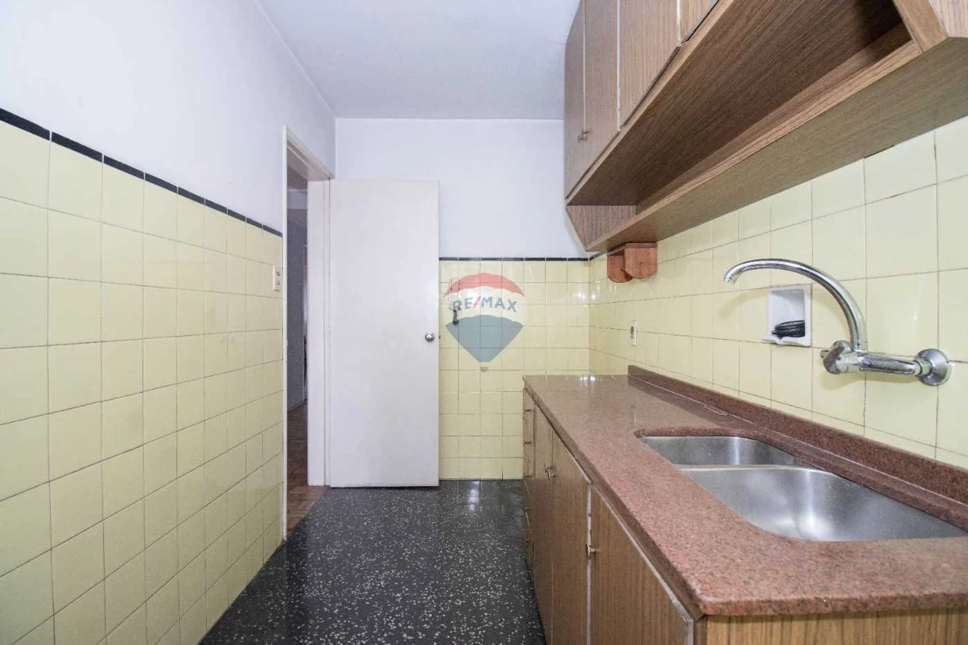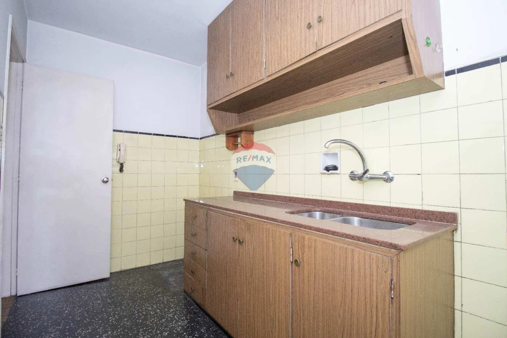 A la izquierda, cocina definida con muebles aéreos y bajo mesada con sus paredes recubiertas de azulejos en perfecto estado. La mesada cuenta con pileta doble y grifería monocomando. Cuenta con extractor.