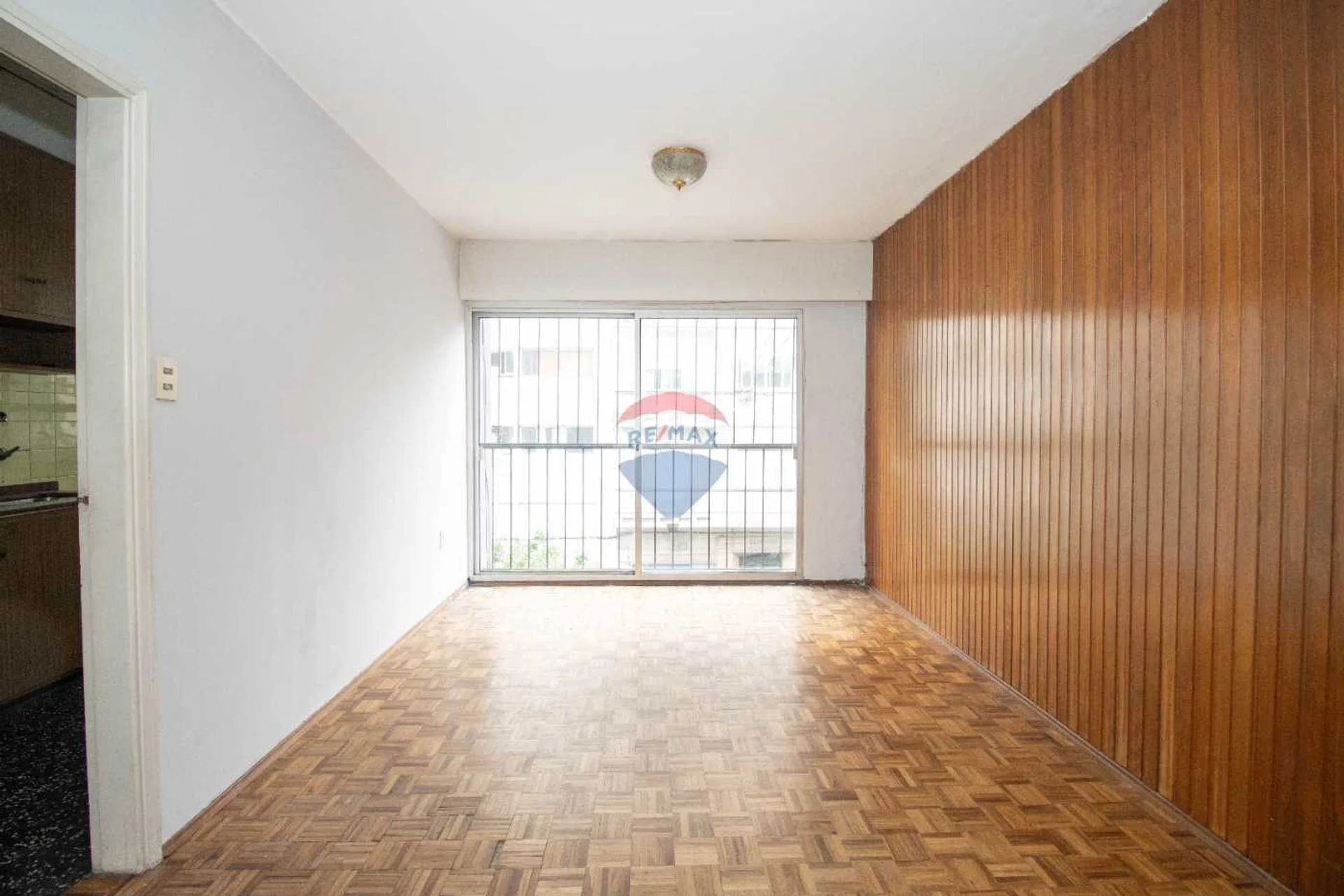 A la entrada amplio living/comedor con ventanal al frente con rejas. Una de sus paredes tiene revestimiento de lambriz.