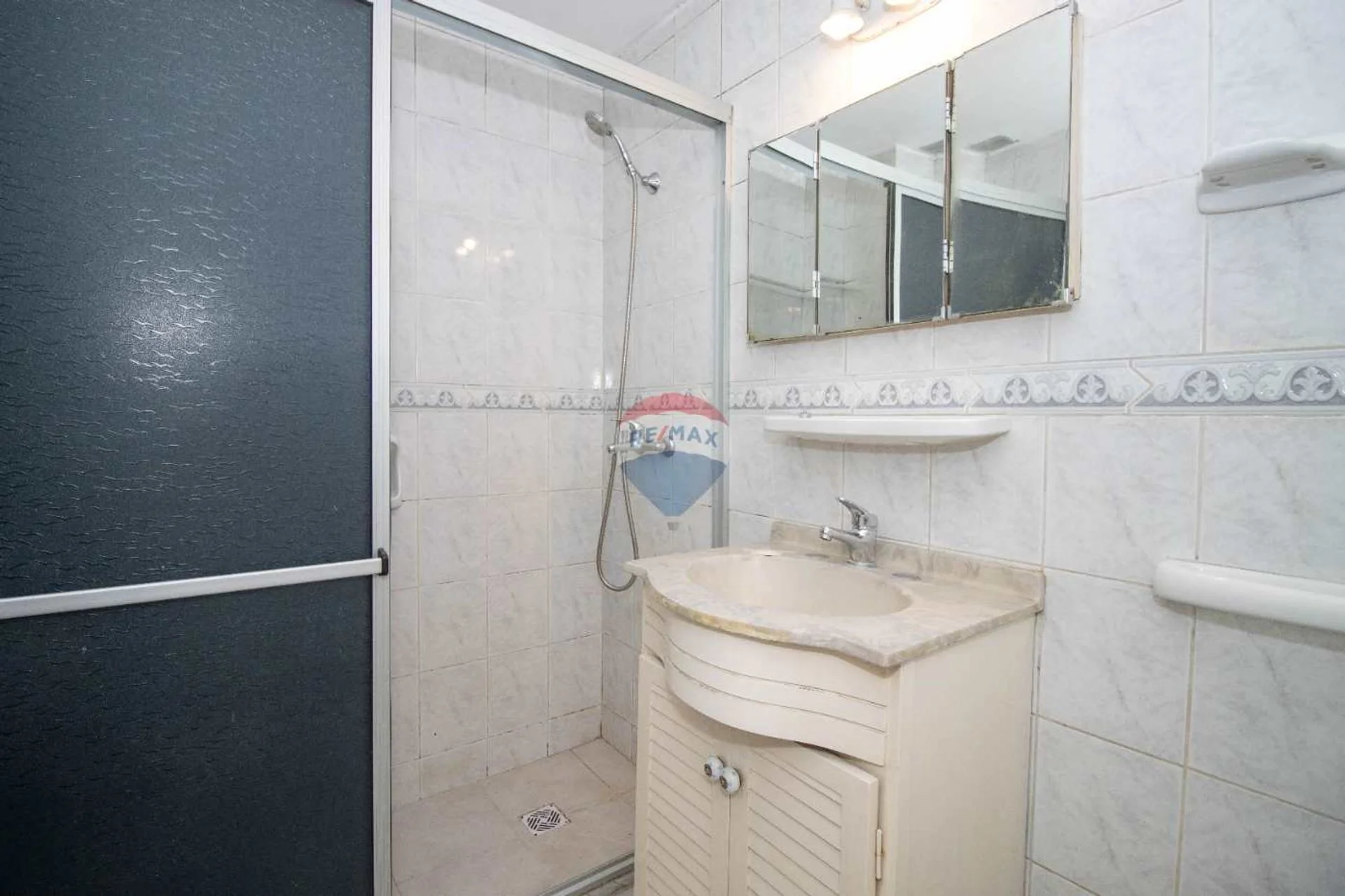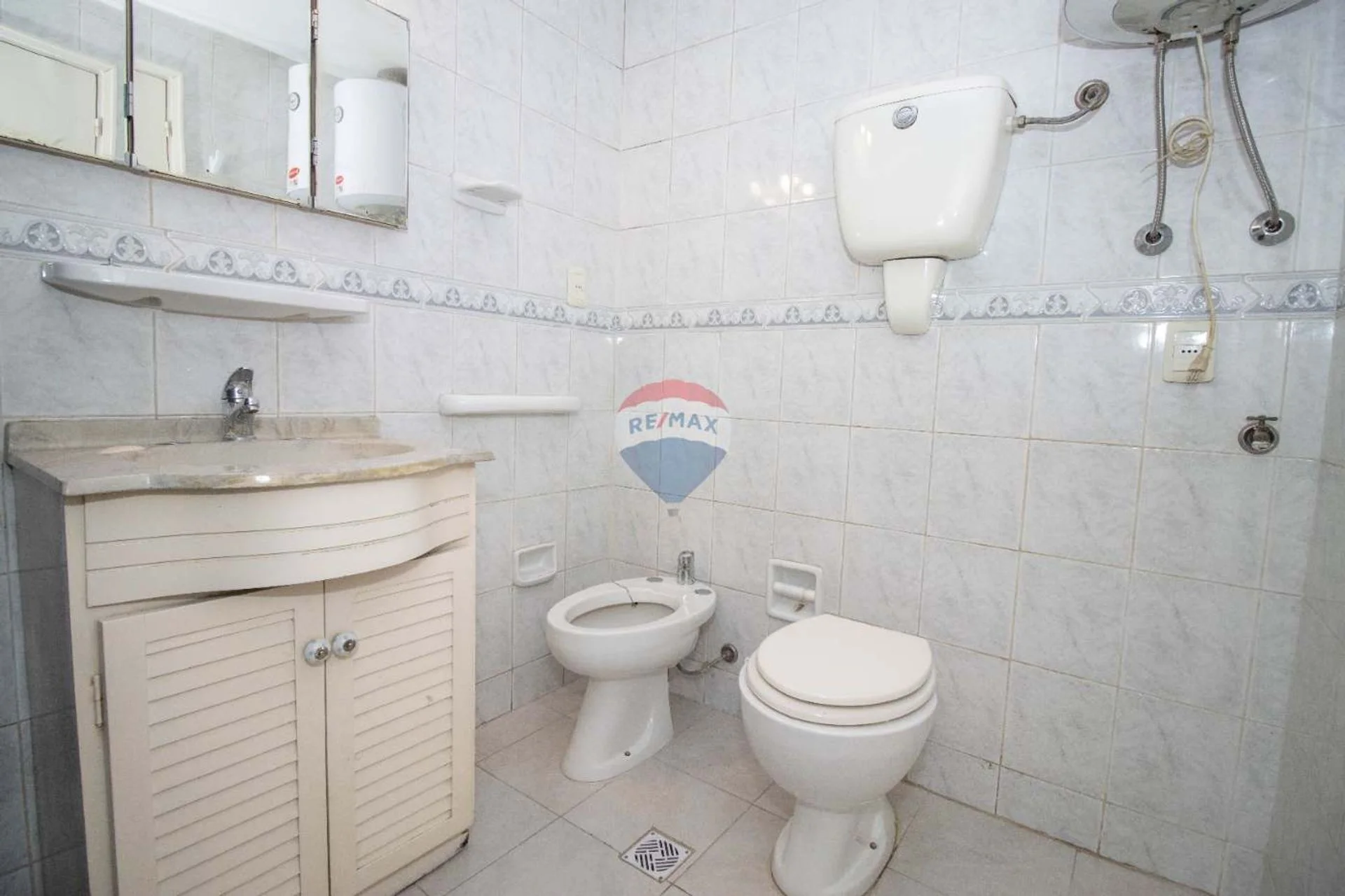 El baño completo cuenta con mampara de acrílico en la ducha, armario debajo de la pileta y calefón.