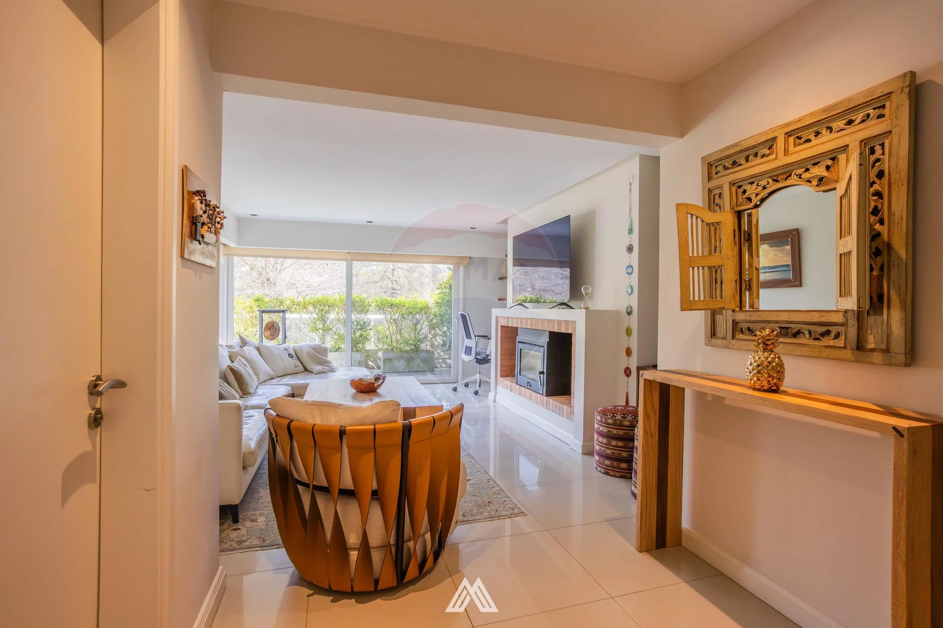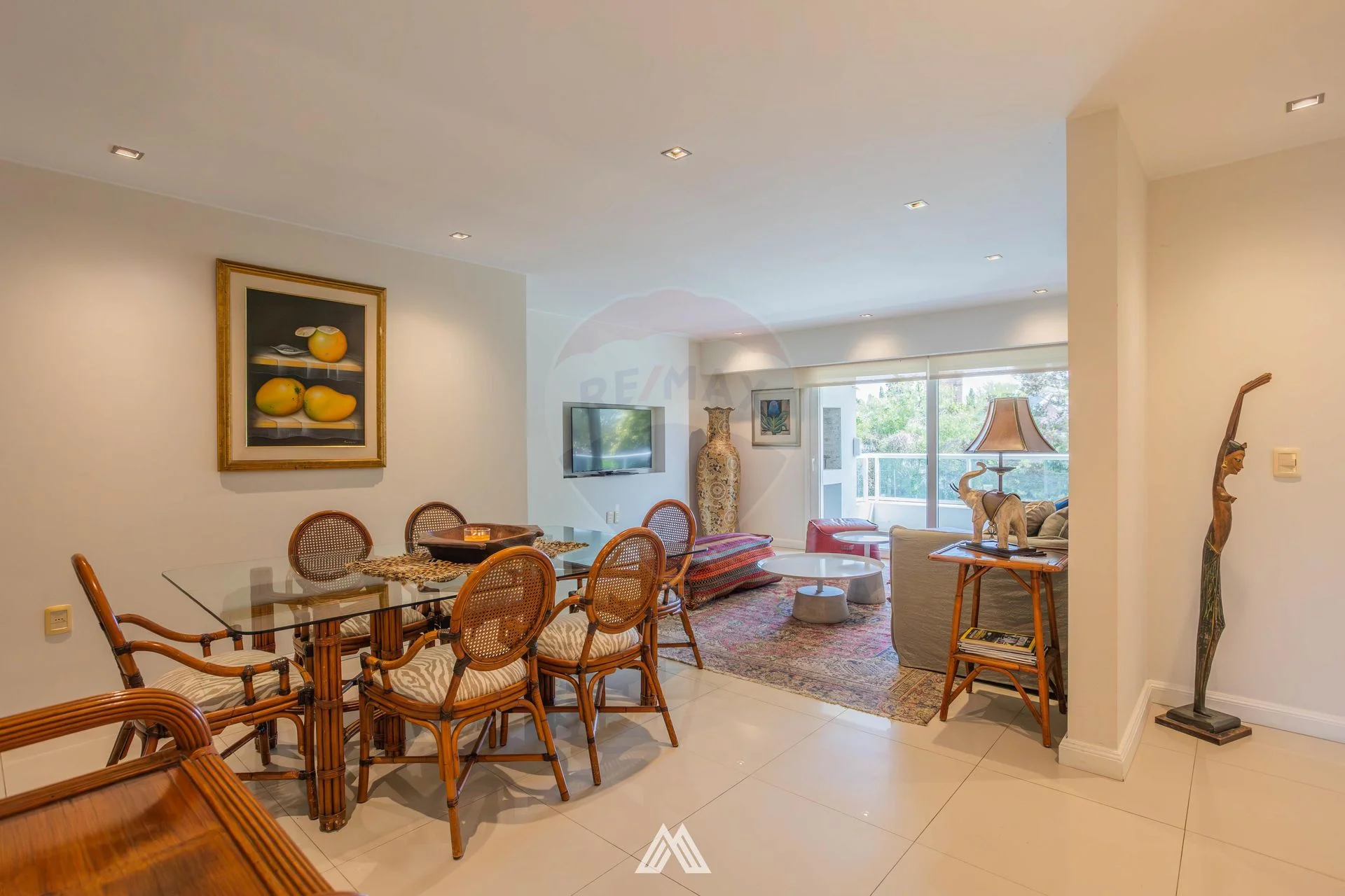 La propiedad cuenta con un amplio living con vista al frente y salida a la terraza. Una puerta corrediza permite separar los ambientes con el estar y el comedor; que se comunican con una segunda terraza al contrafrente que posee parrillero.