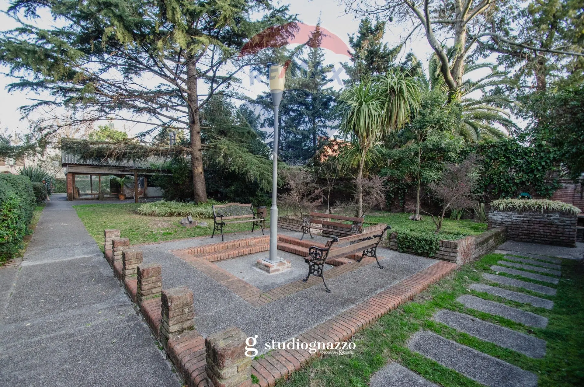 El complejo cuenta con un hermoso fondo verde, con un sector destinado a juegos infantiles, espacios de descanso al aire libre, una barbacoa completa y varios parrilleros acondicionados.