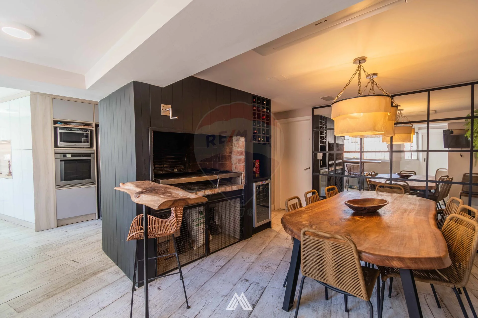 El área de servicio fue transformada en una barbacoa cerrada con baño actualizado y espacio de lavadero.