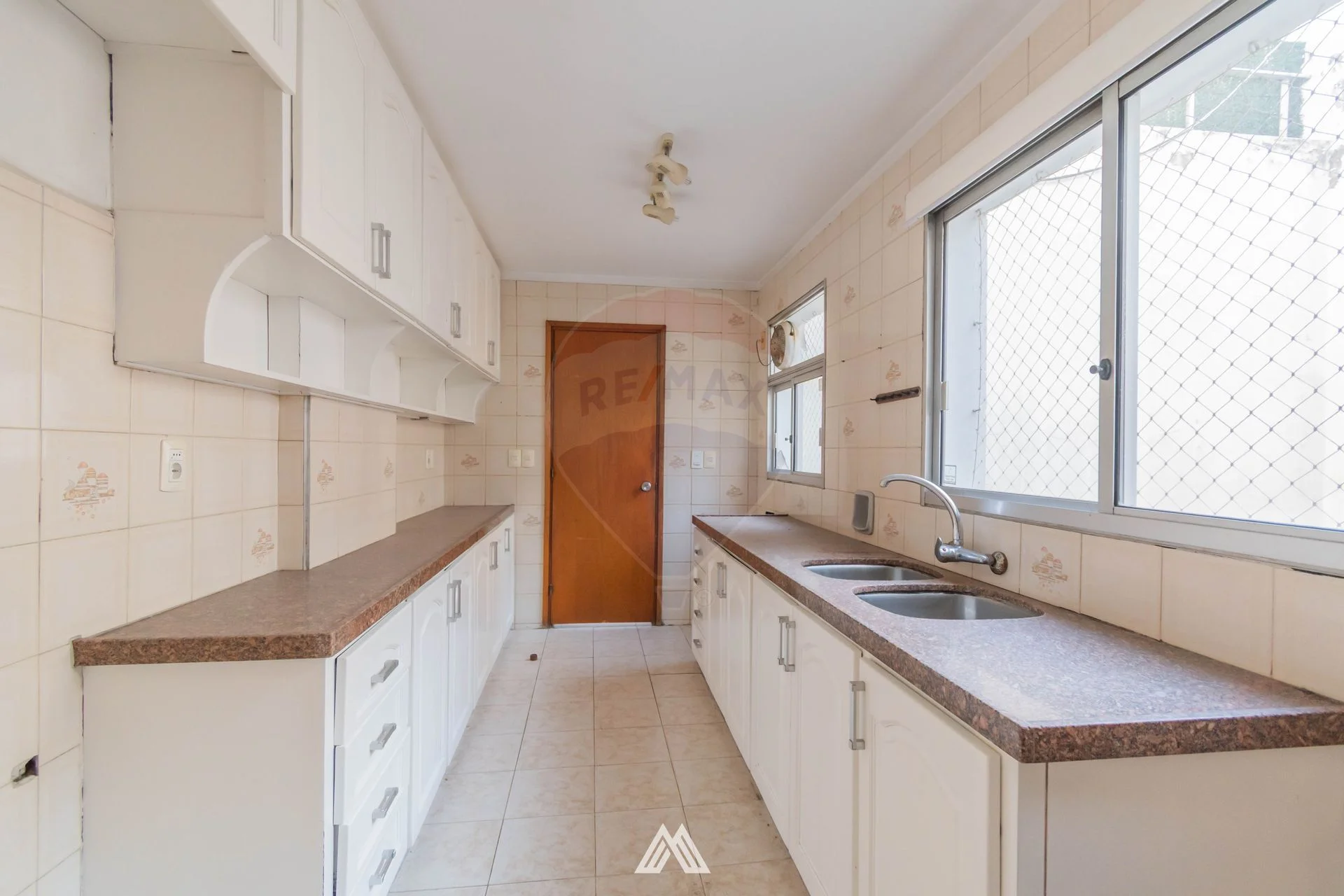 Cocina con ventana apaisada, doble mesada, muebles sobre y bajo mesada.