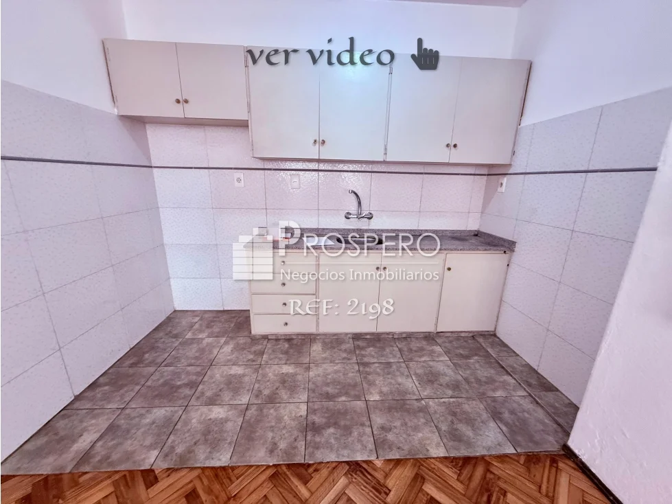 Monoambiente con cocina integrada con muebles aéreos y bajo mesada, dispone de lugar heladera , cocina y tiene previsto la ventilacion para camapana extractora.