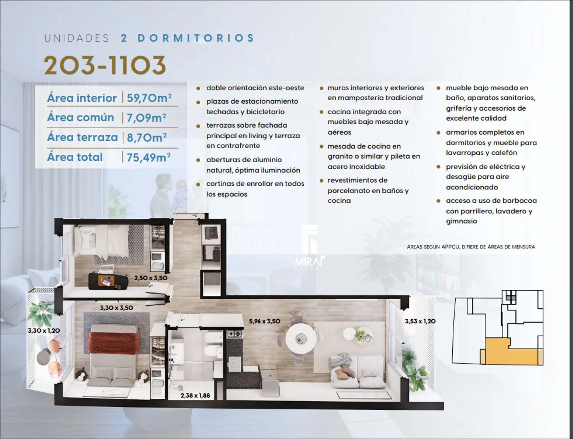 En esta oportunidad presentamos una unidad, de dos dormitorios, pasante, balcón al frente y al fondo.
