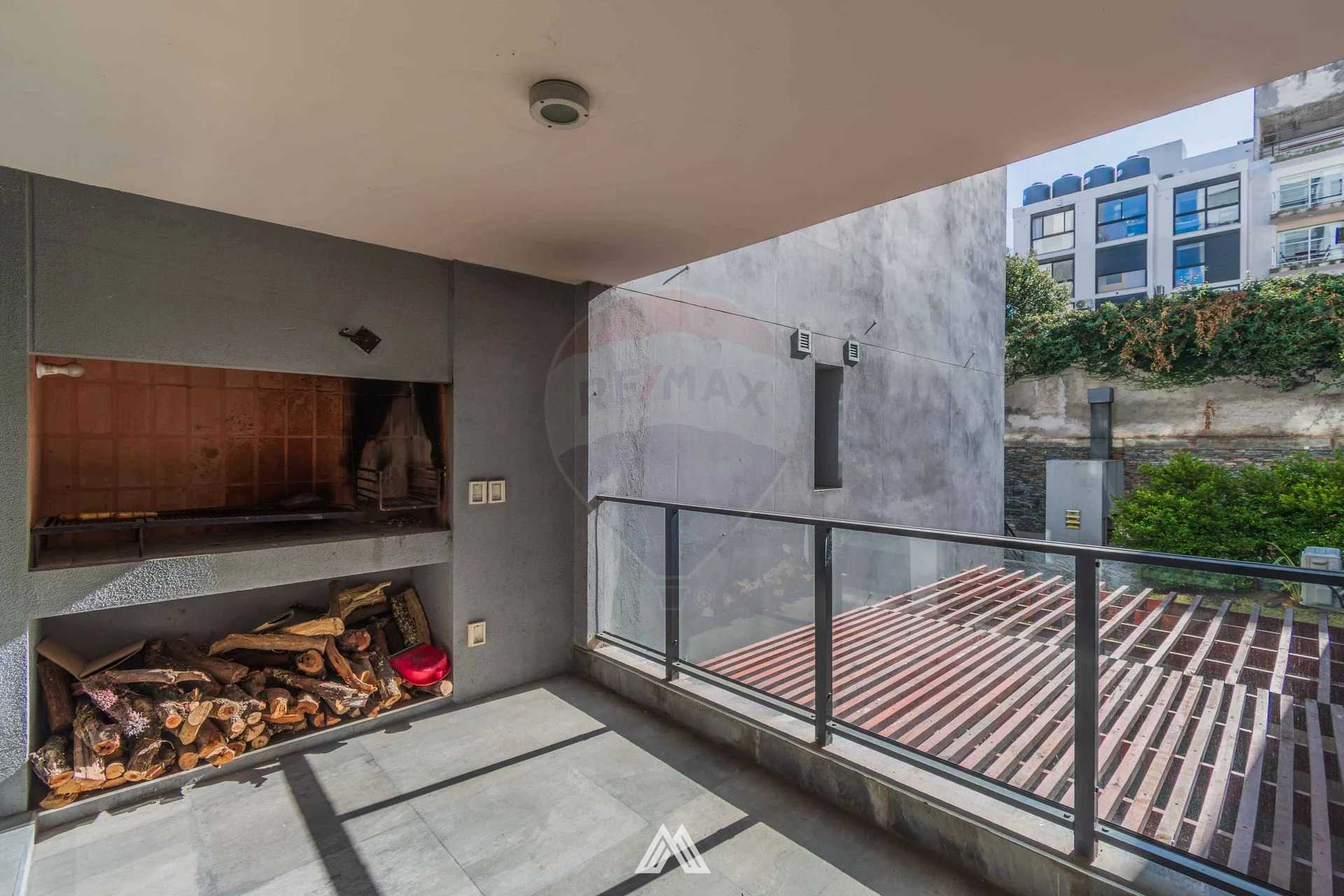 - Terraza con parrillero a la que se accede desde el estar y uno de los dormitorios
