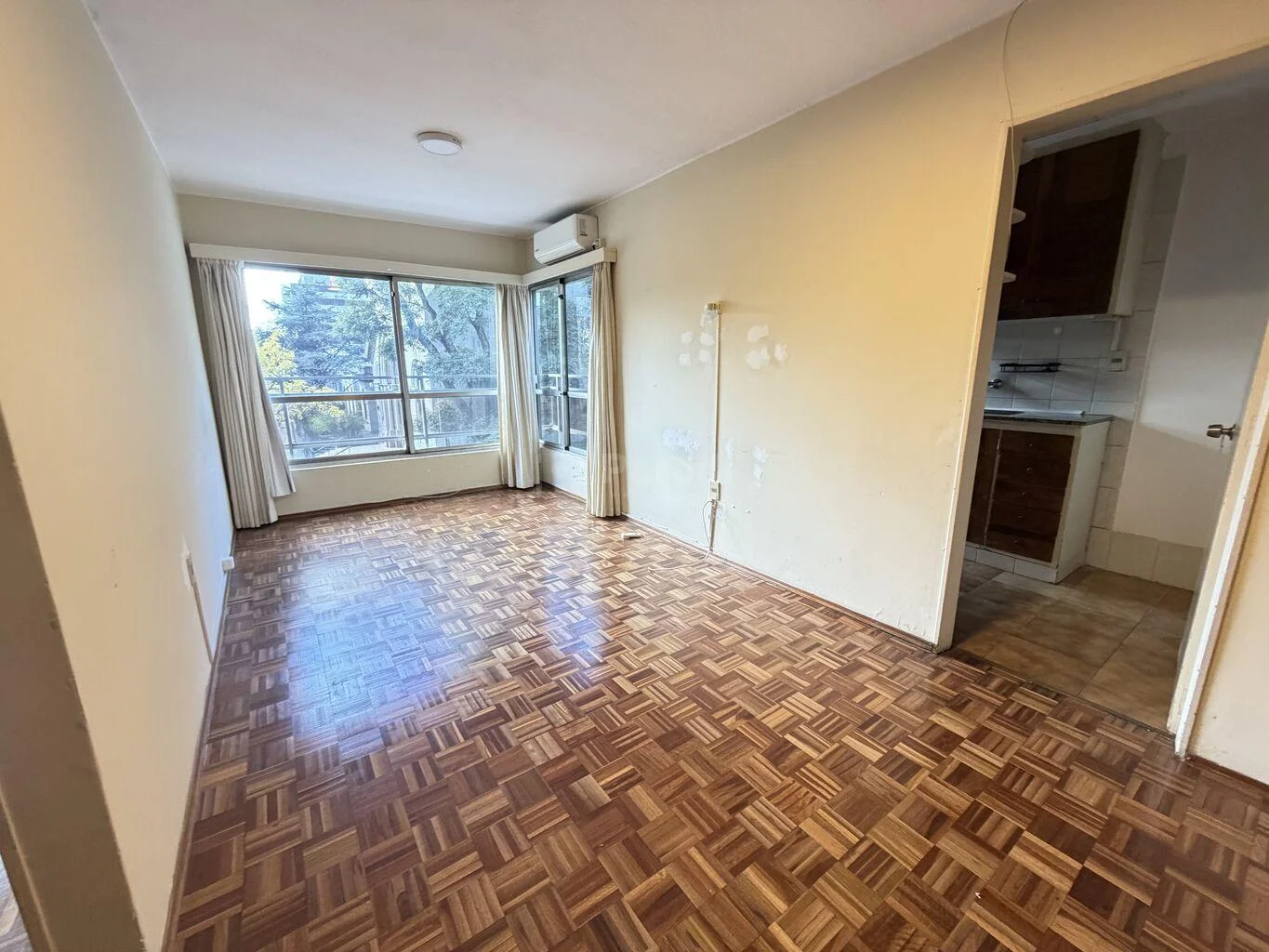 Lindísimo apto. frente a Pza Tamburini - mucho sol y vistas . Living comedor con ventanal amplio y bow window , 1 dorm. con placard Pisos de parquet de madera 1 baño completo Cocina definida Aire acondicionado Vig. de 6 am a 22 pm + Foxys Se permiten oficinas. No deje de consultar! Tenemos llave