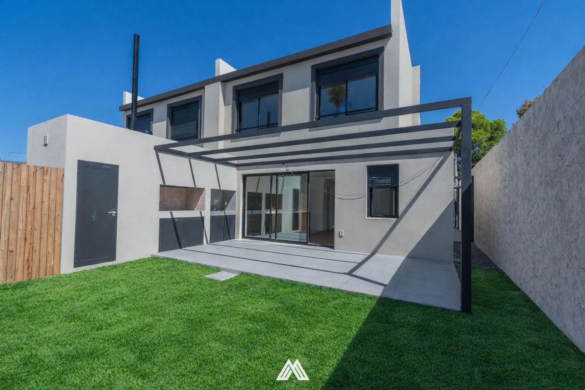 Casas de 3 dormitorios + escritorio en planta baja, dormitorio principal con baño en suite y vestidor, segundo baño en planta alta, toilette en planta baja, jardín privado con parrillero y cochera.