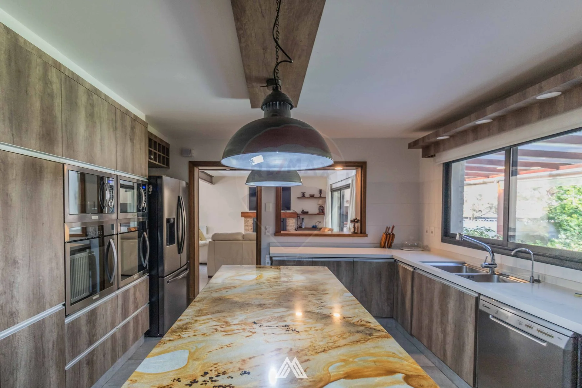 Cocina moderna y espaciosa, con isla central y conectada al estar.