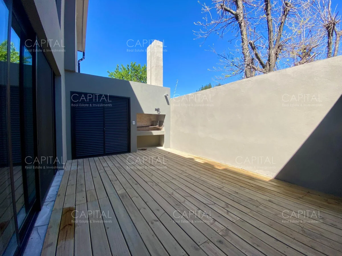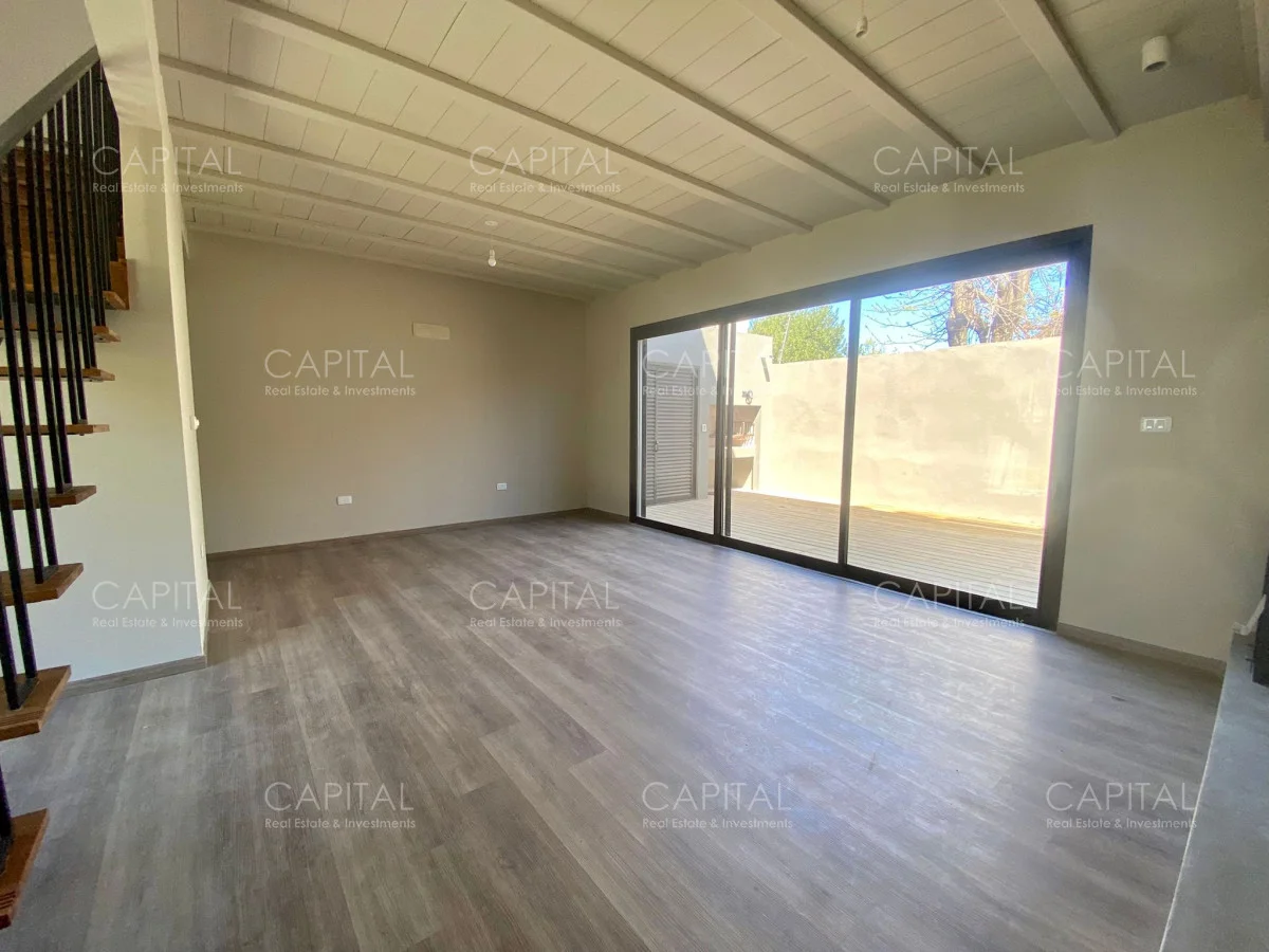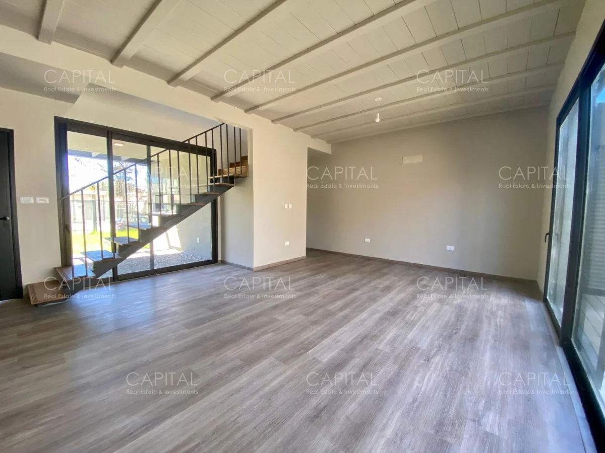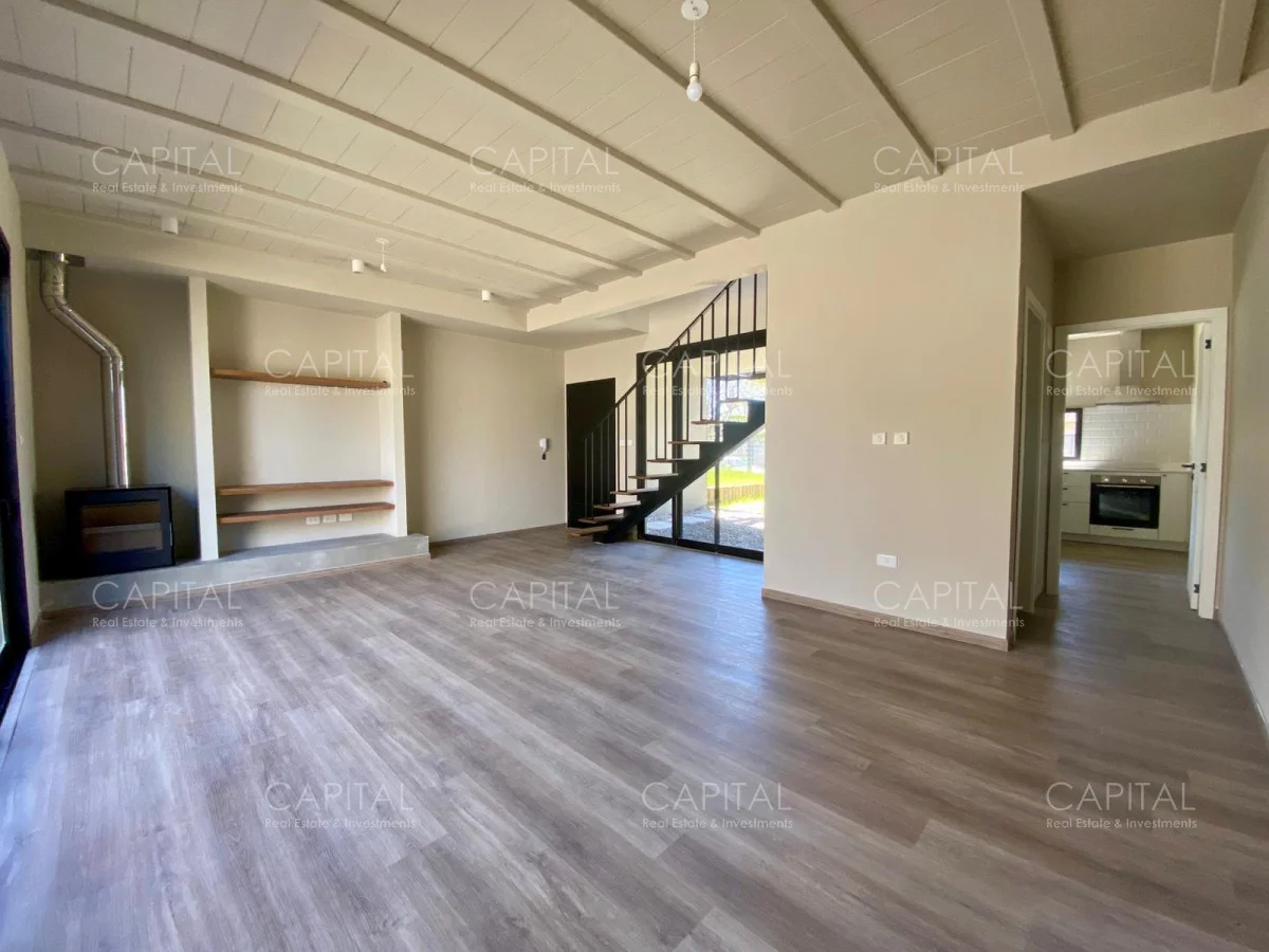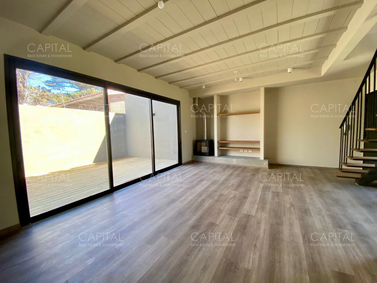 Casa PH a estrenar en Carrasco Norte Living comedor con estufa a leña de alto rendimiento Cocina definida con horno, anafe y extractor Toilette Gran ventanal con salida a patio con parrillero Planta Alta 3 dormitorios, principal en suite Baño completo Garaje para 2 autos Calefacción por losa radiante eléctrica Aberturas en DVH Excelente opción Referencia Interna : Tera-39019