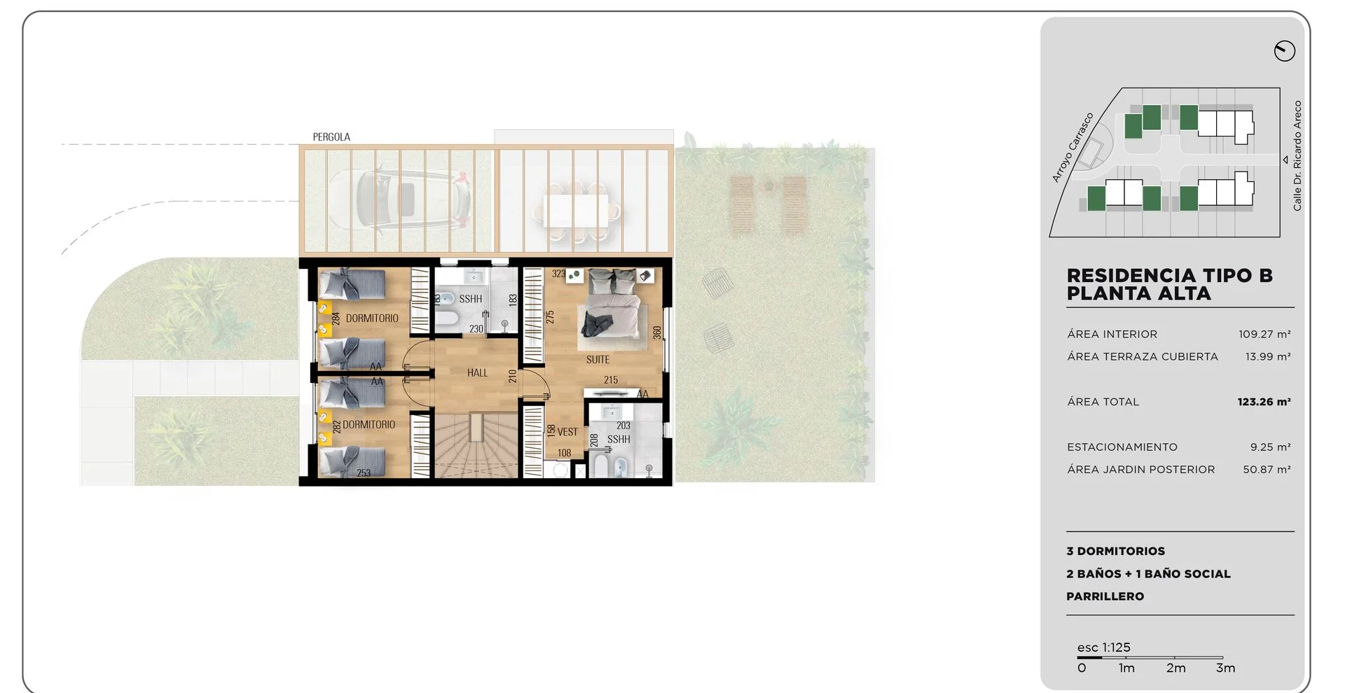 Se trata de un barrio de 14 casas todas con su propio jardín verde. Proyecto de La Buonora Desarrollos y Estudio de Arquitectos Gómez Platero.