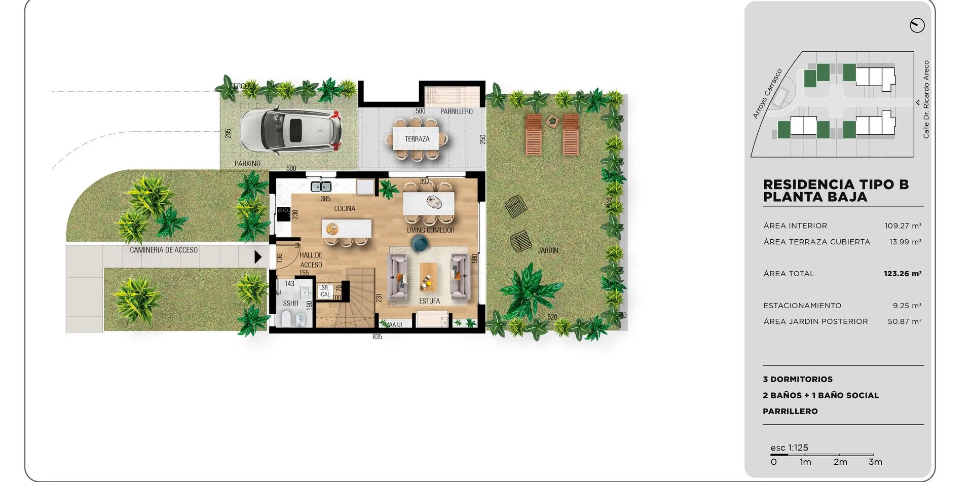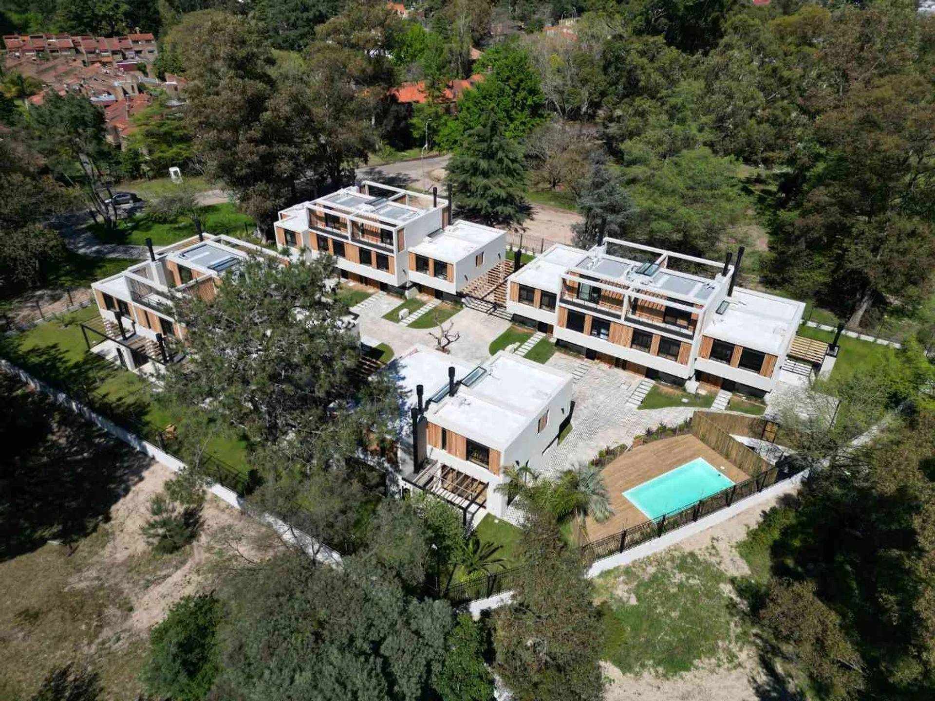 Se trata de un barrio de 14 casas todas con su propio jardín verde. Proyecto de La Buonora Desarrollos y Estudio de Arquitectos Gómez Platero.