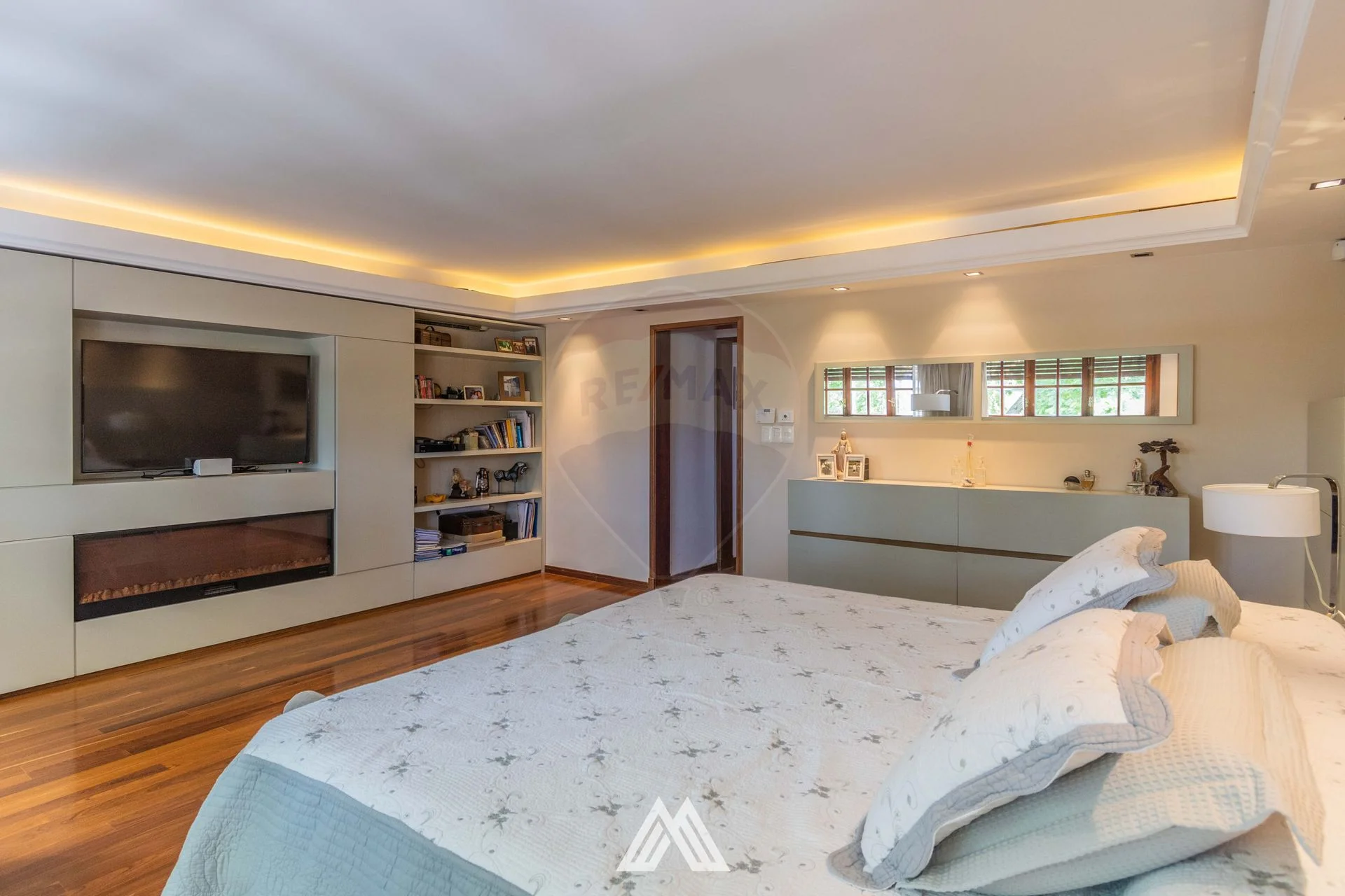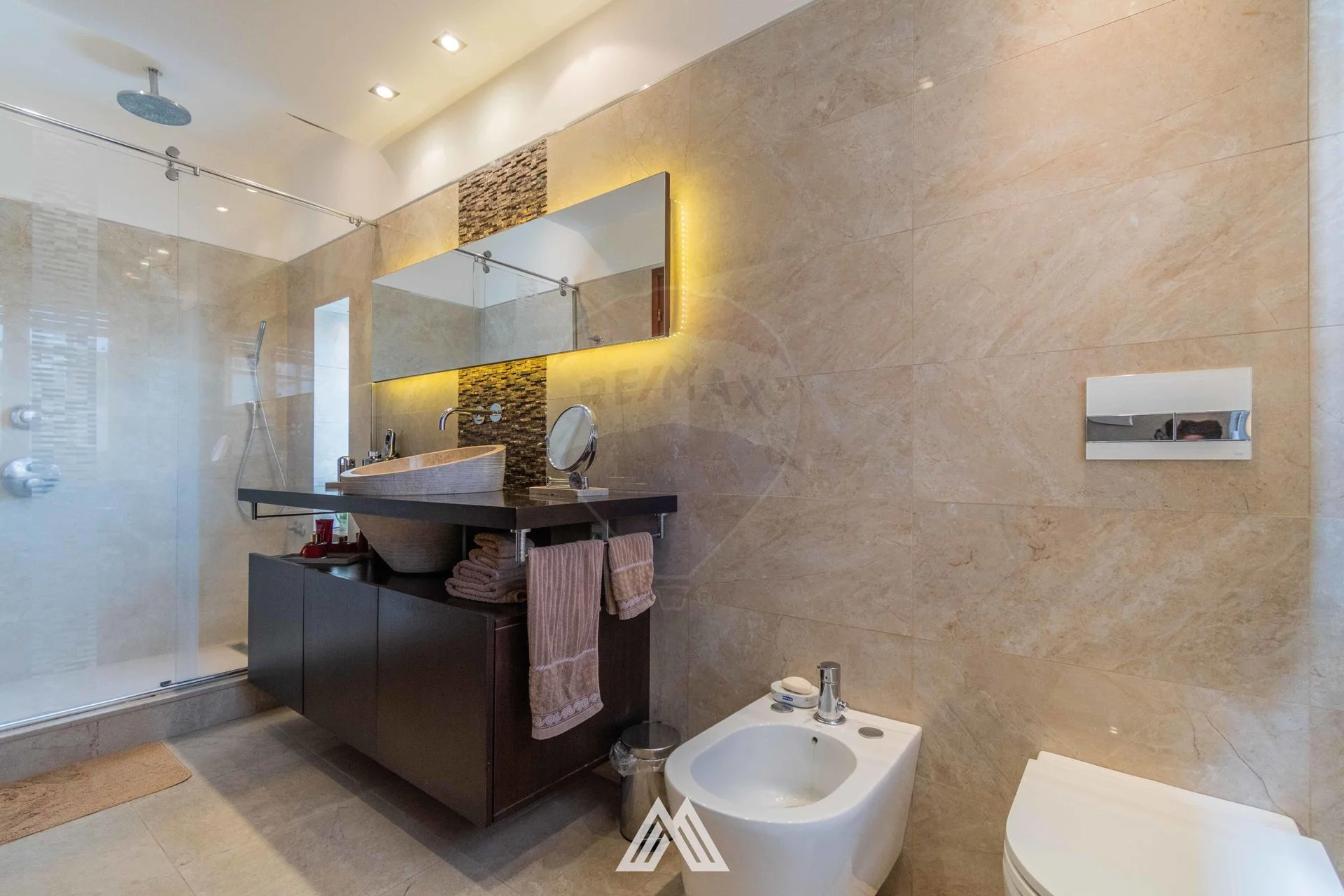 En la planta alta master suite con vestidor, estufa tipo hogar eléctrica, baño con ducha escocesa, grifería Hansgrohe y revestimientos de primera calidad. Aire acondicionado empotrado.